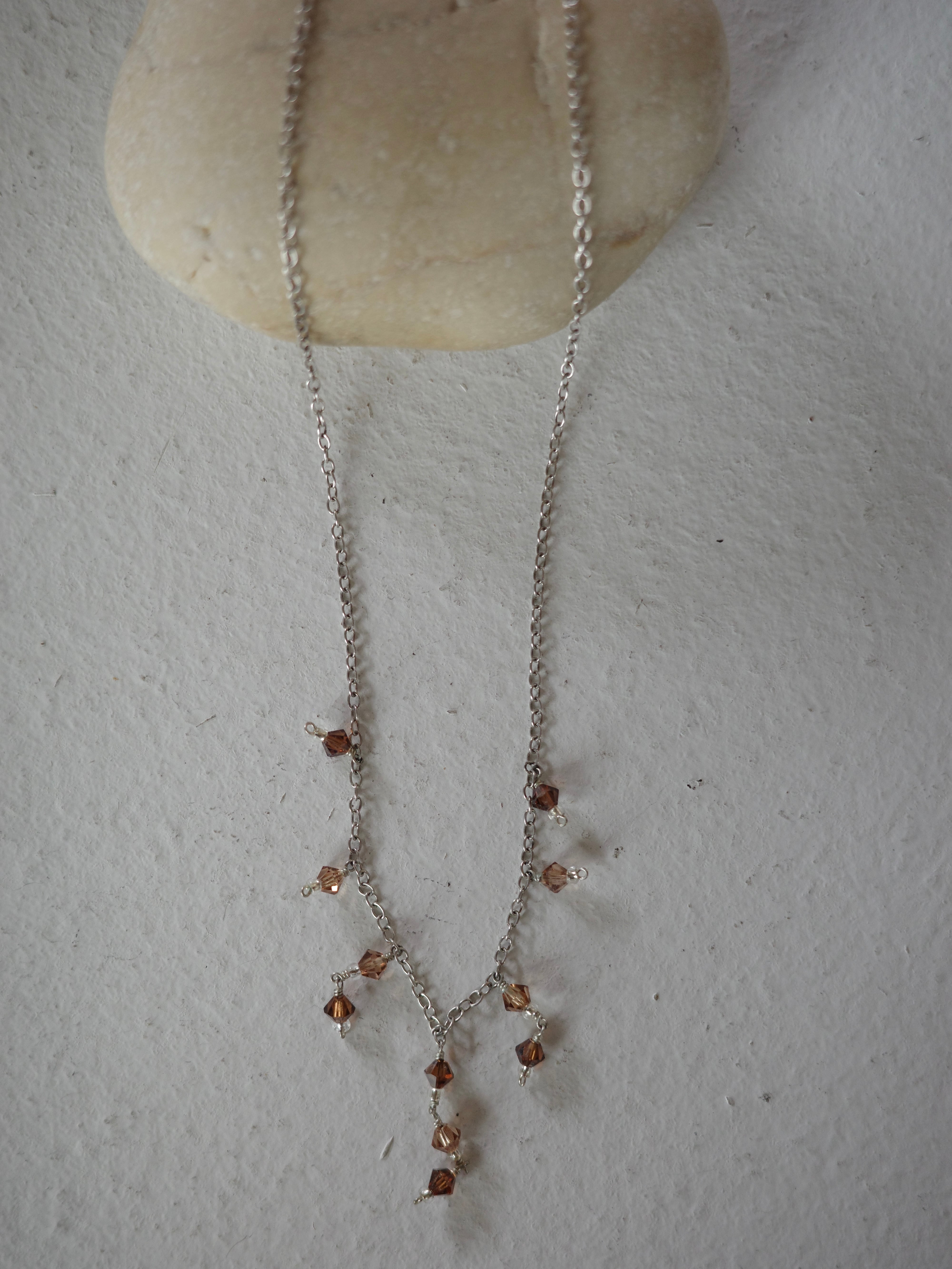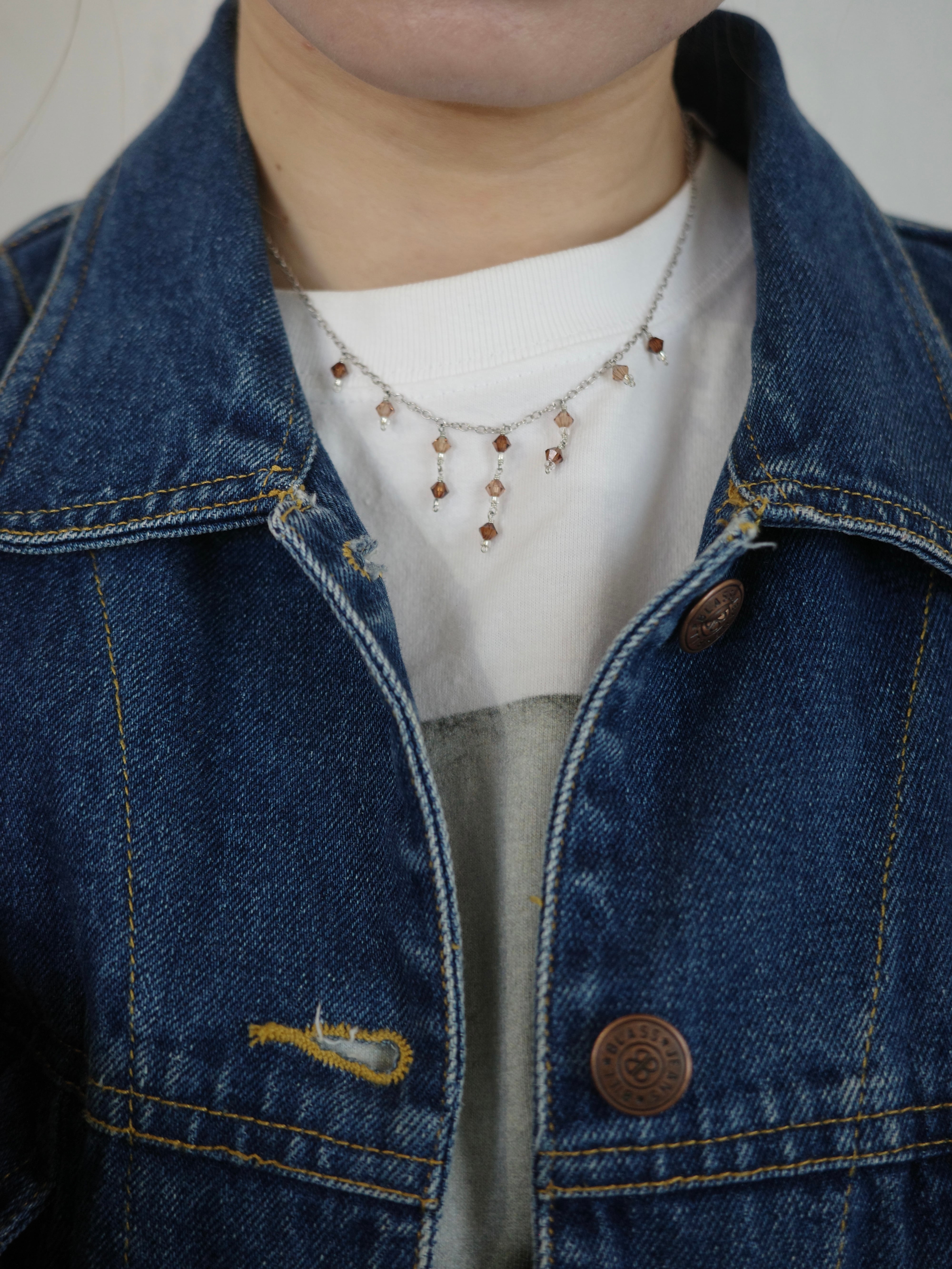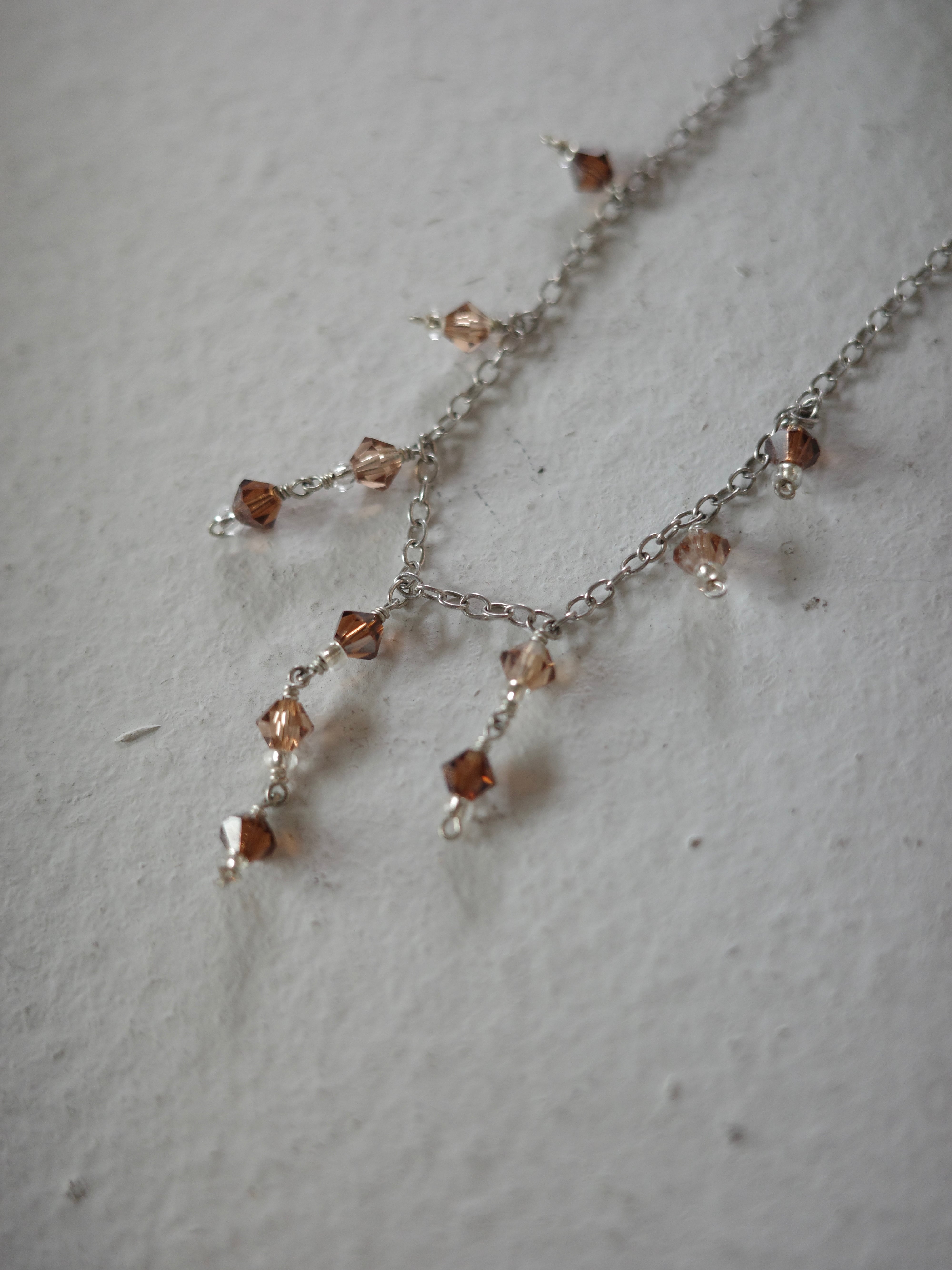アメリカより仕入れたヴィンテージネックレスです。華奢なチェーンに、ブラウンのクリスタルビーズがフリンジ状に施された、上品で繊細なデザインです。