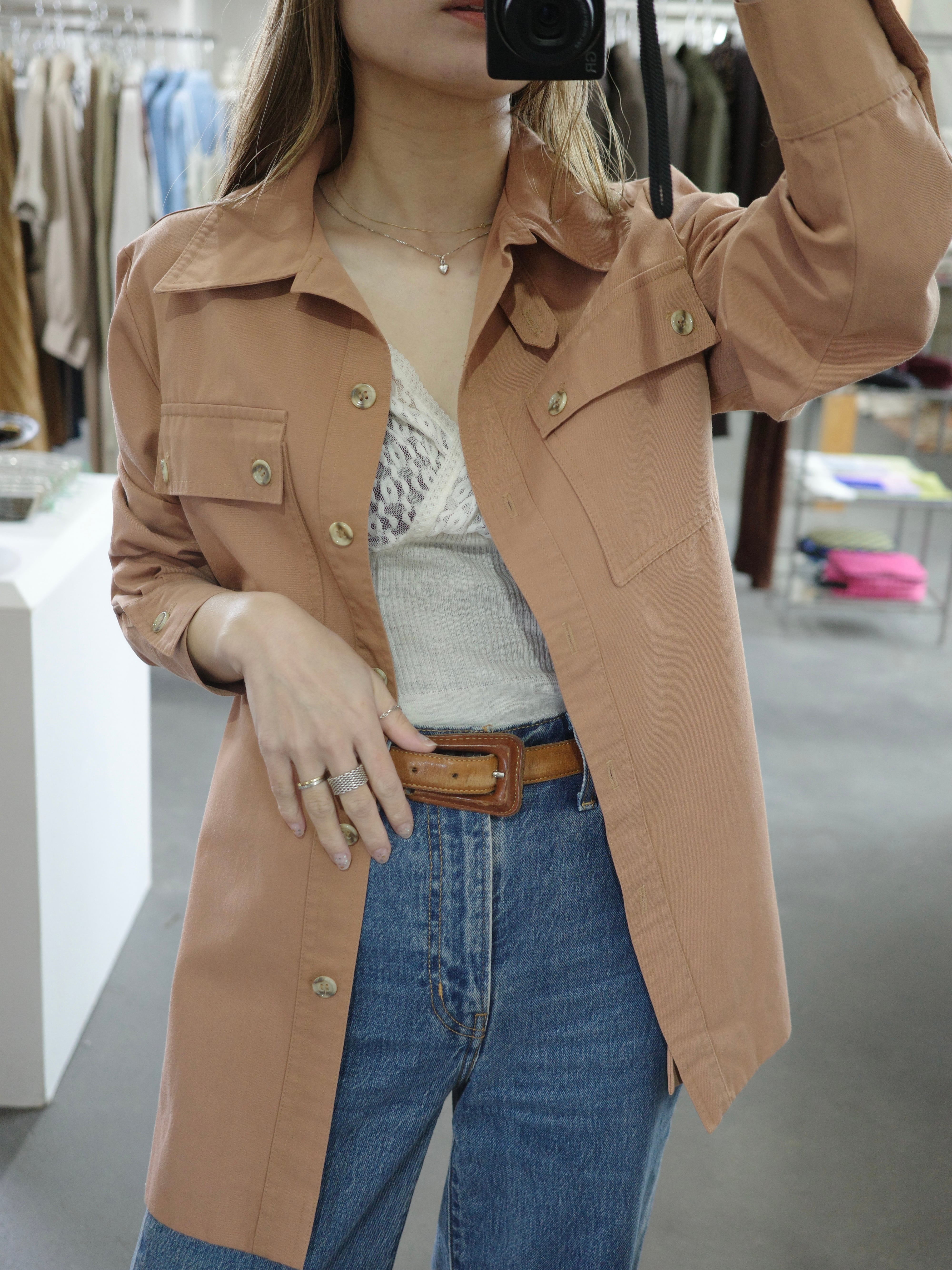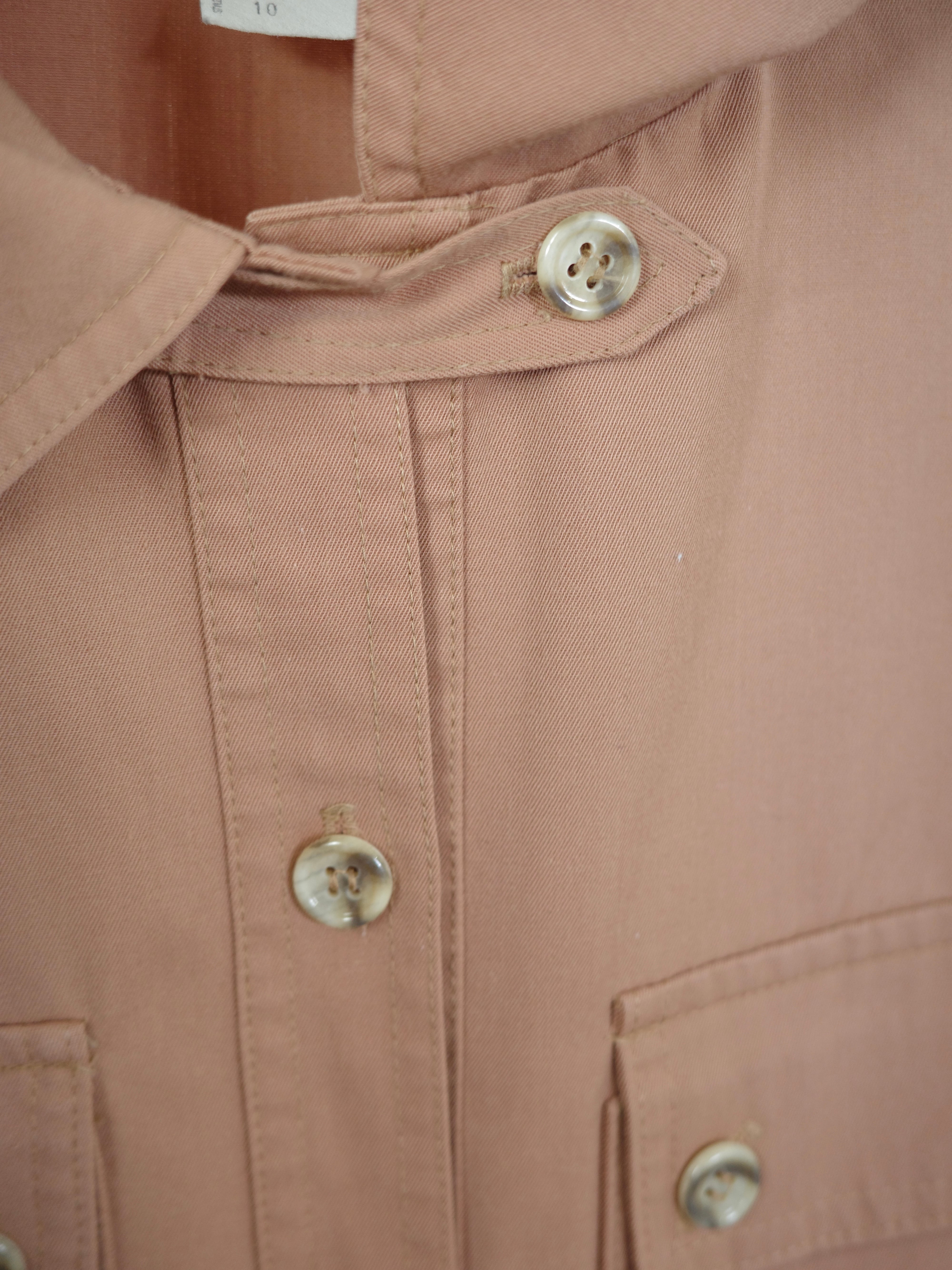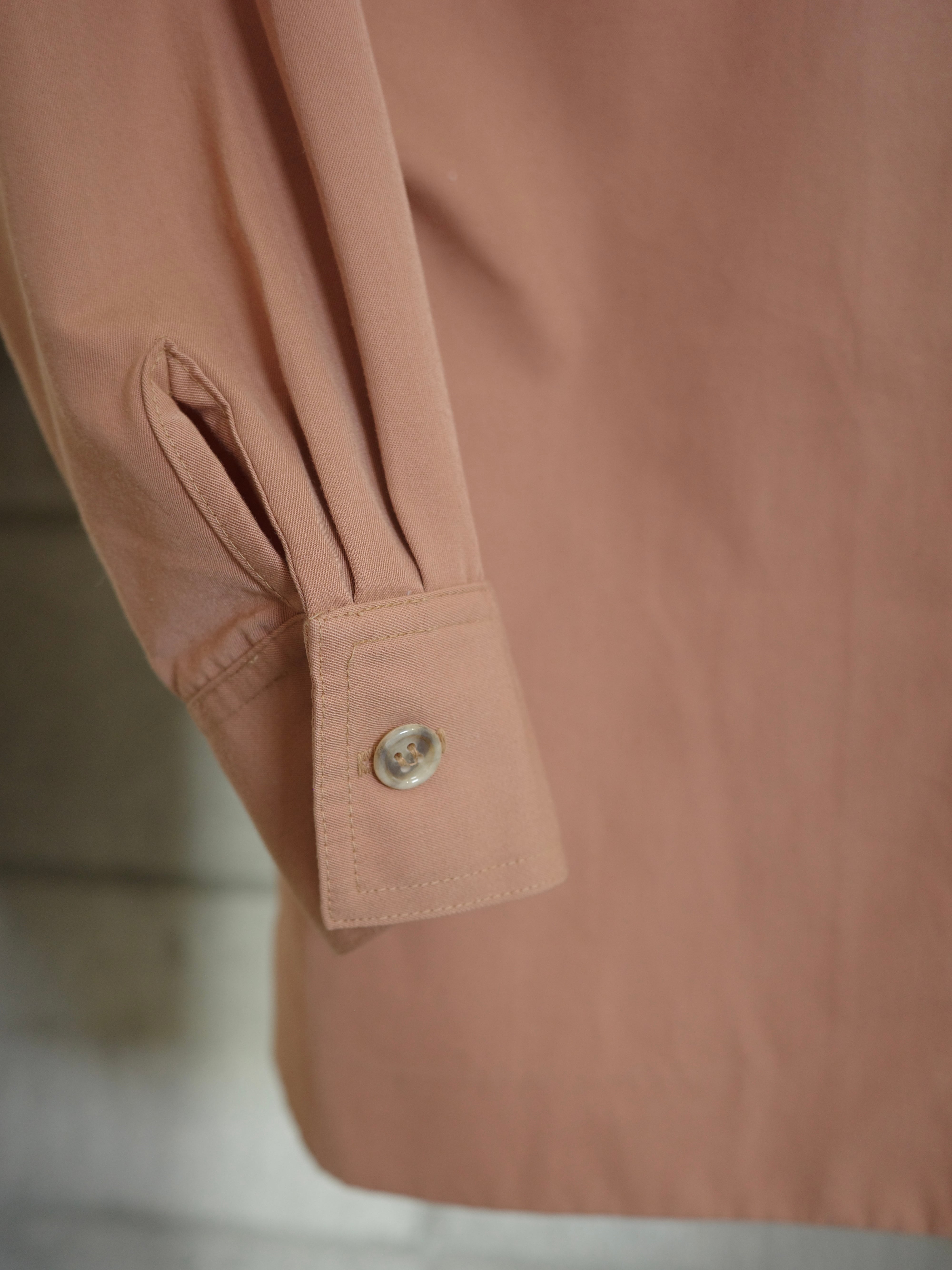 ピンクカラーが珍しいワークシャツジャケットです。張りのある生地できちんと感がありつつも、襟周りやポケットなどはワーク感のあるカジュアルなデザインになっています。落ち着いた大人カラーのピンクも春らしくて素敵です。