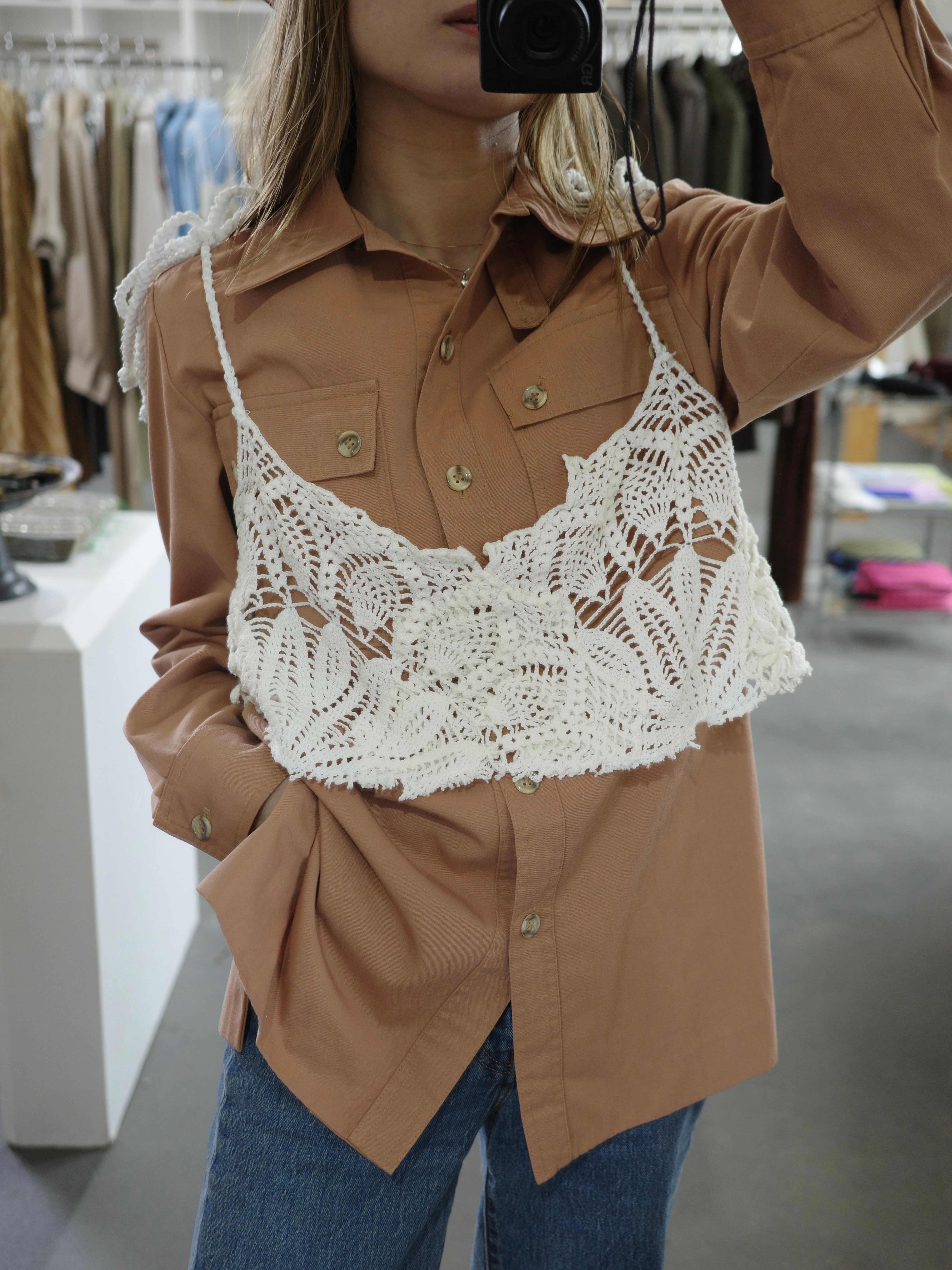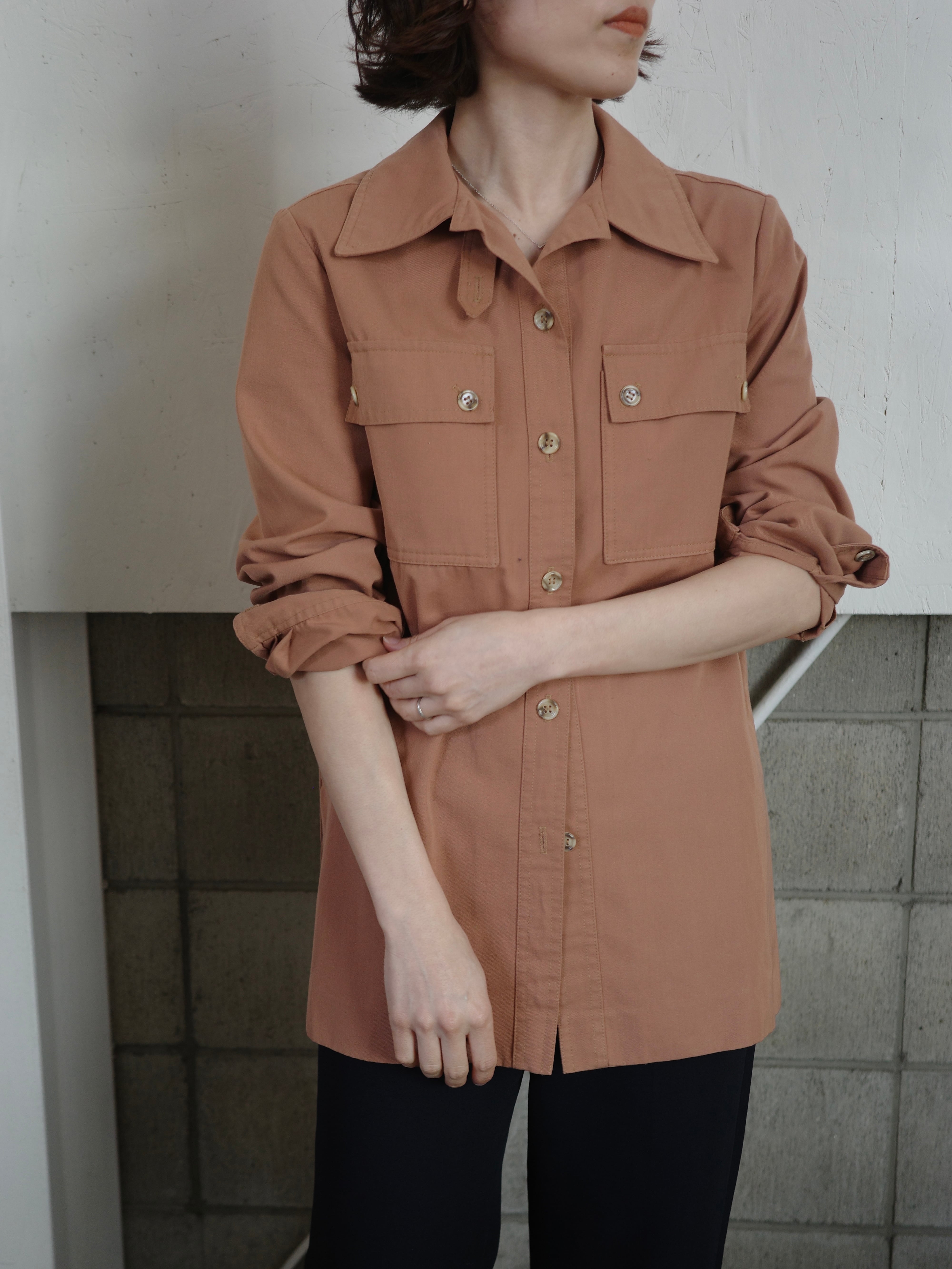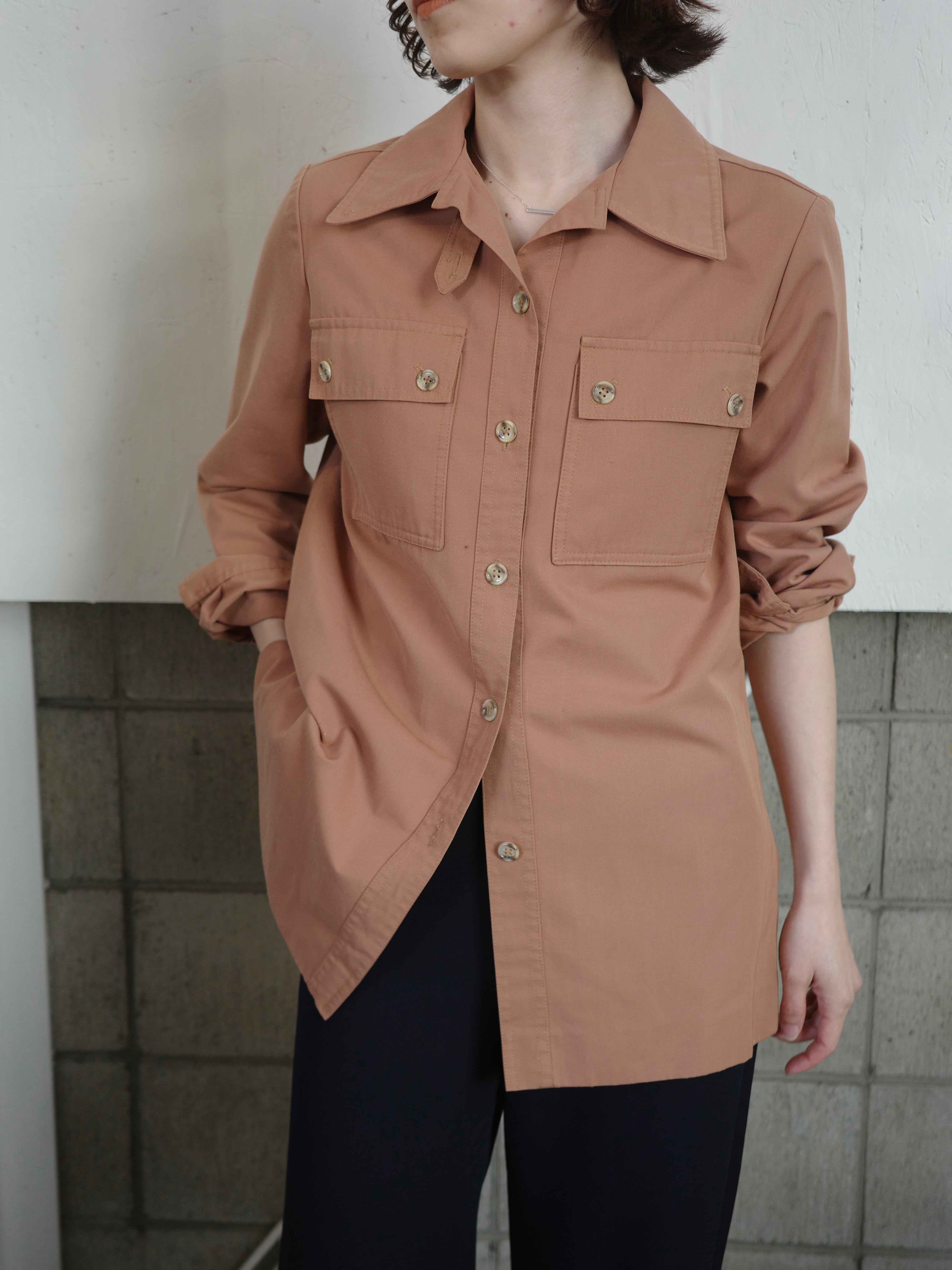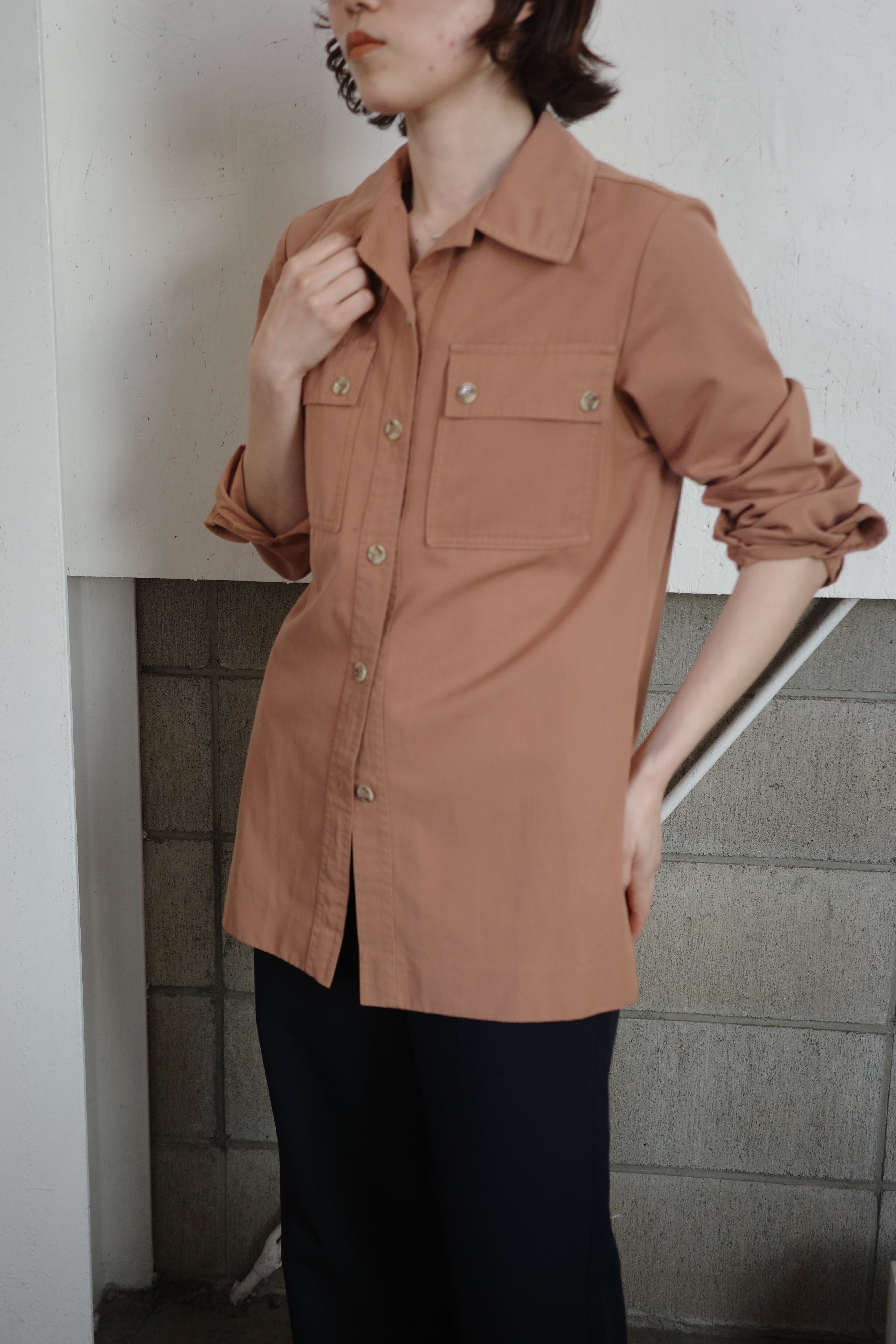 ピンクカラーが珍しいワークシャツジャケットです。張りのある生地できちんと感がありつつも、襟周りやポケットなどはワーク感のあるカジュアルなデザインになっています。落ち着いた大人カラーのピンクも春らしくて素敵です。