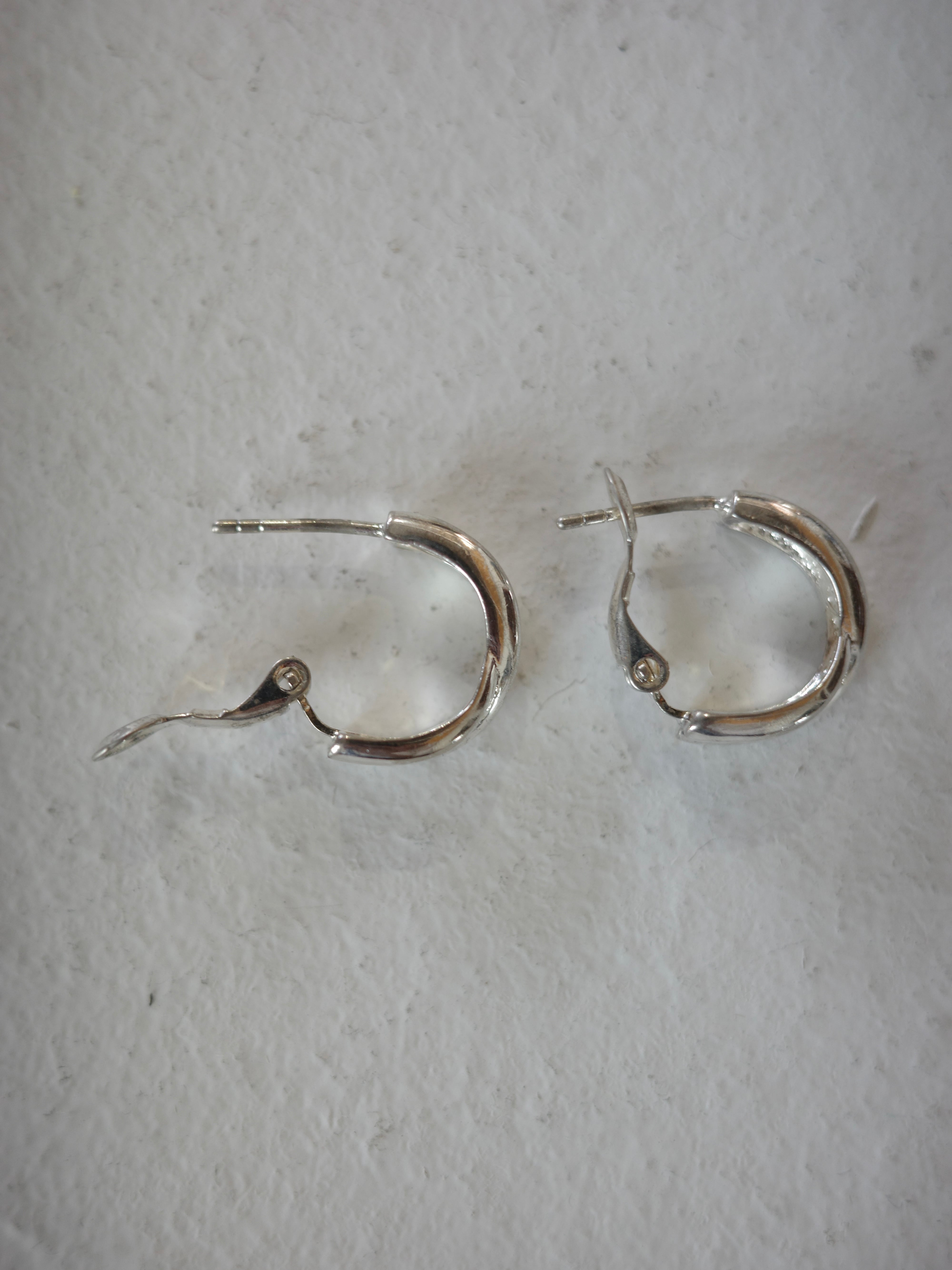 2本のラインが交差したデザインのピアスです。程よくデザインが効いており、キャッチも一体型なので着脱も安心してしていただけます。