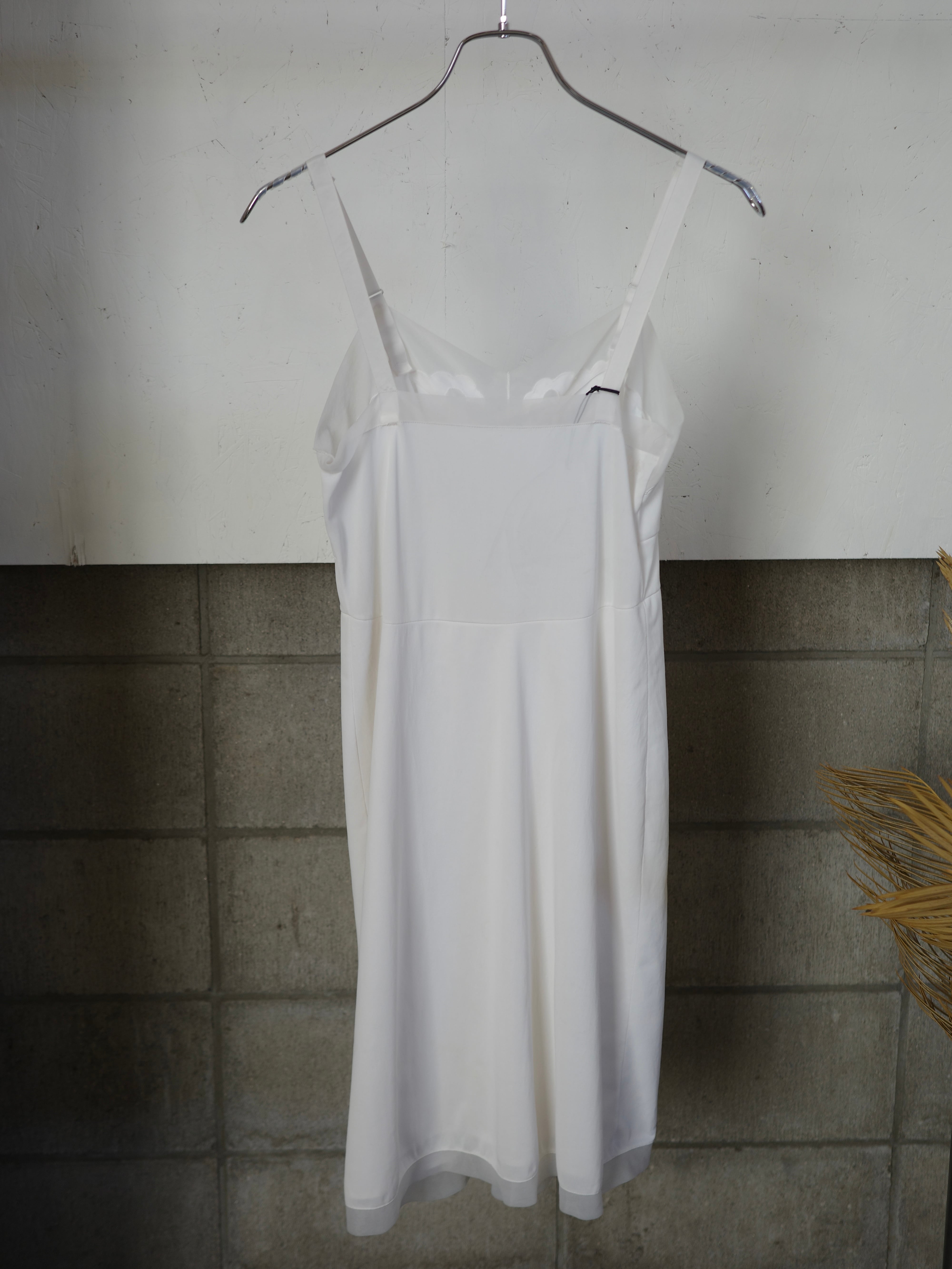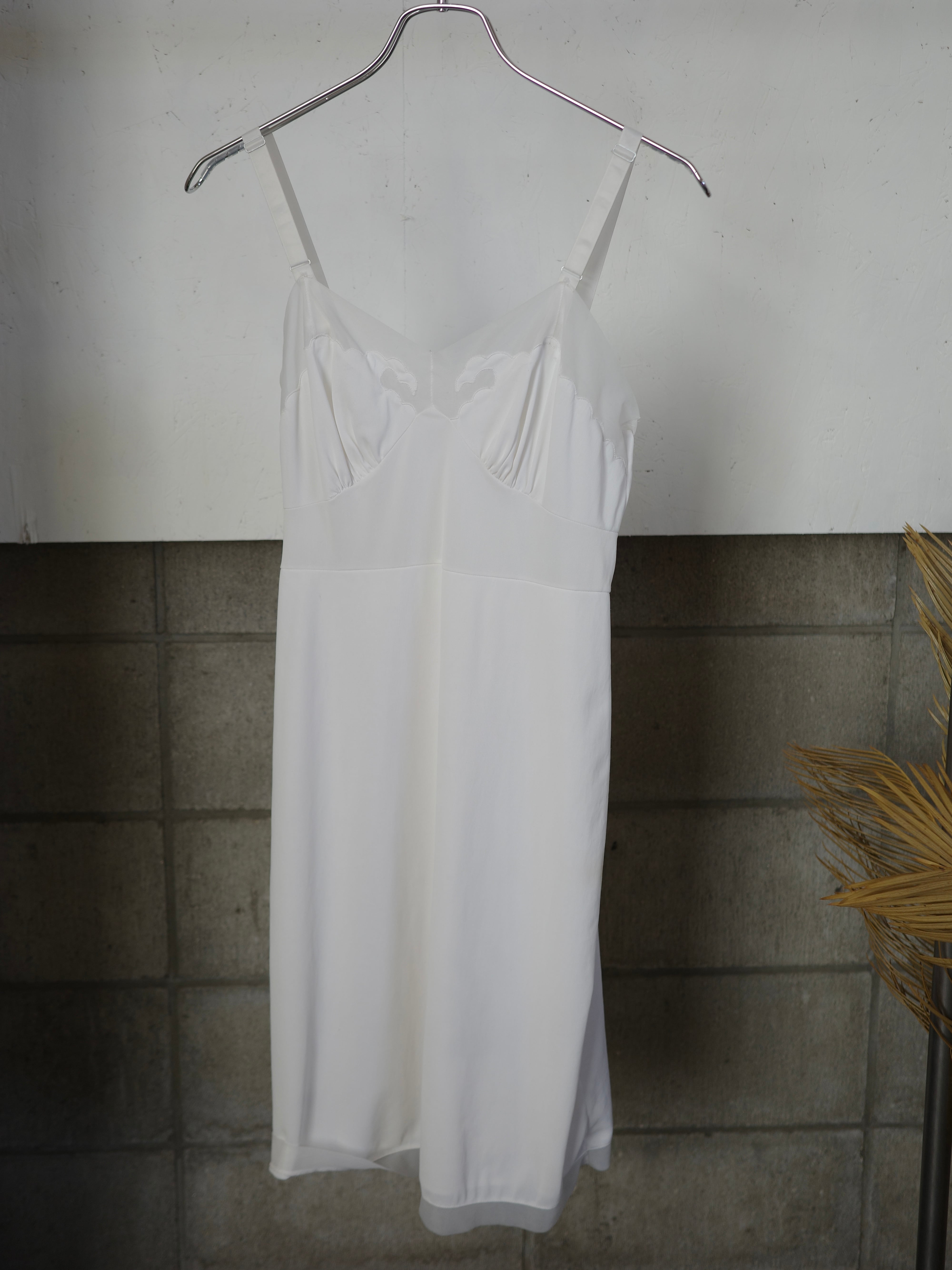 胸元のスカラップのようなデザインと、シアー感が素敵なデザインキャミワンピです。