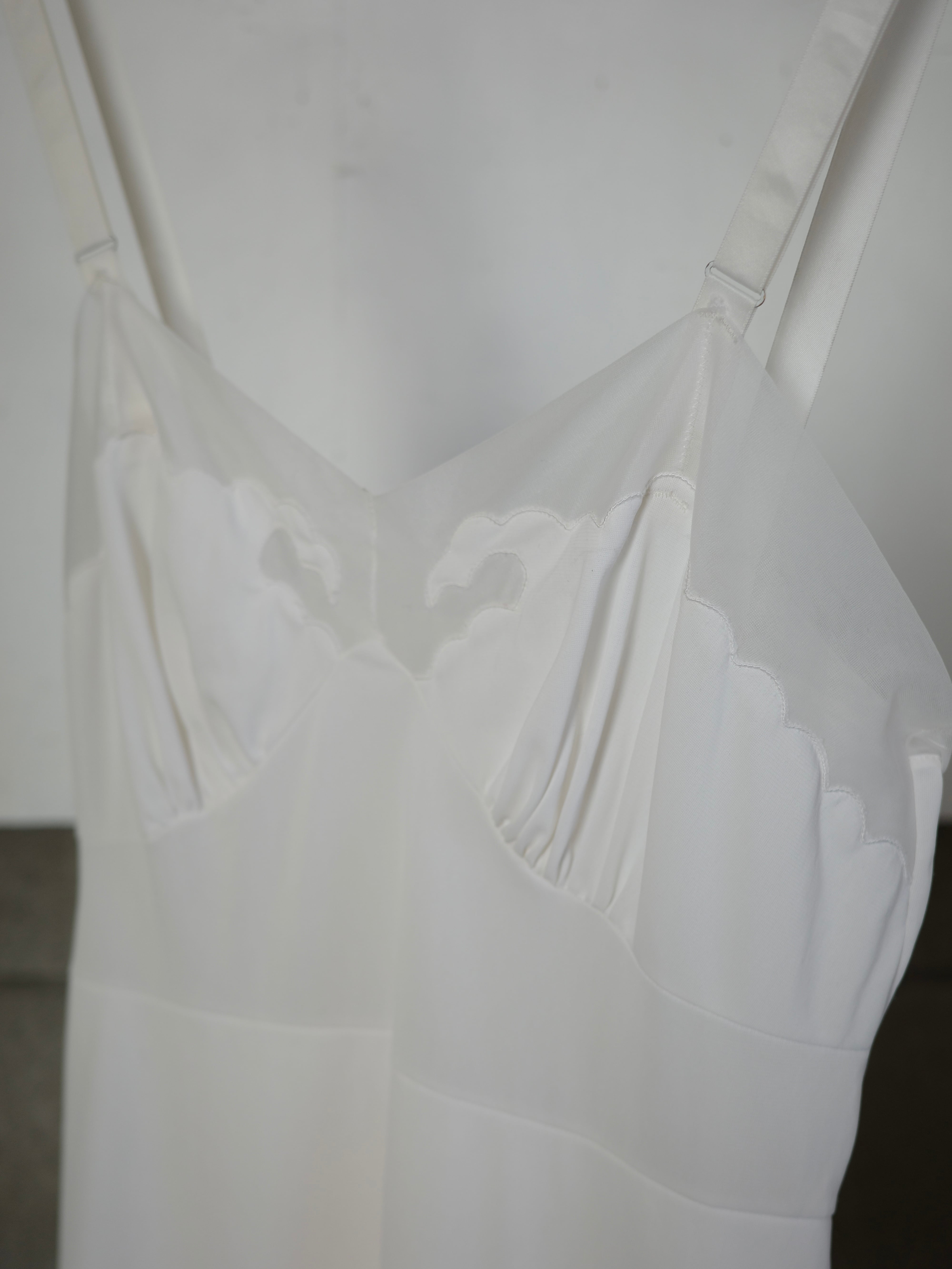 レースではないのでランジェリー感がありすぎません。タイトなつくりなので、1枚でジャケットの中に着たり、薄手のシャツに重ねるのがおすすめです。裏地がついています。
