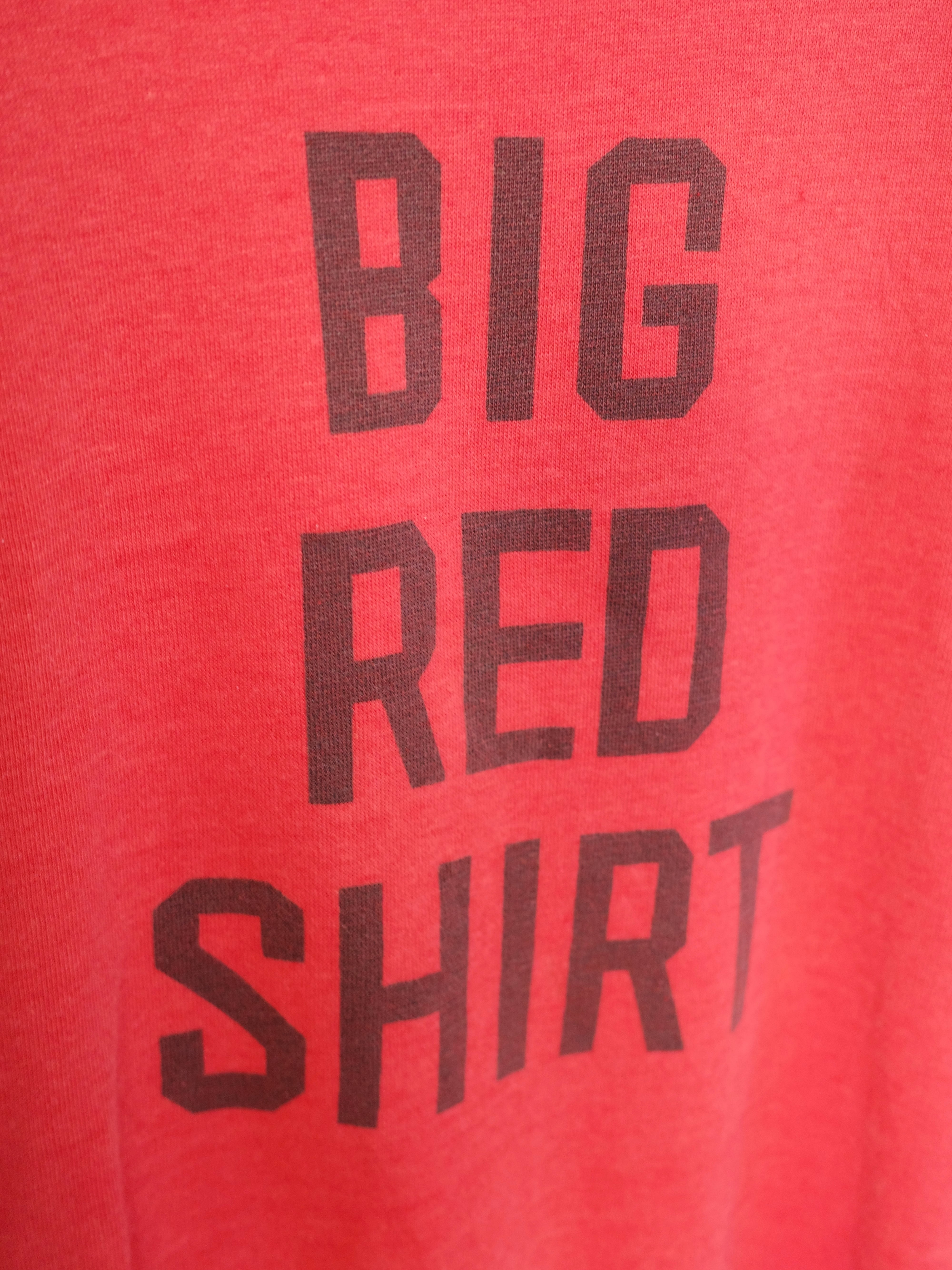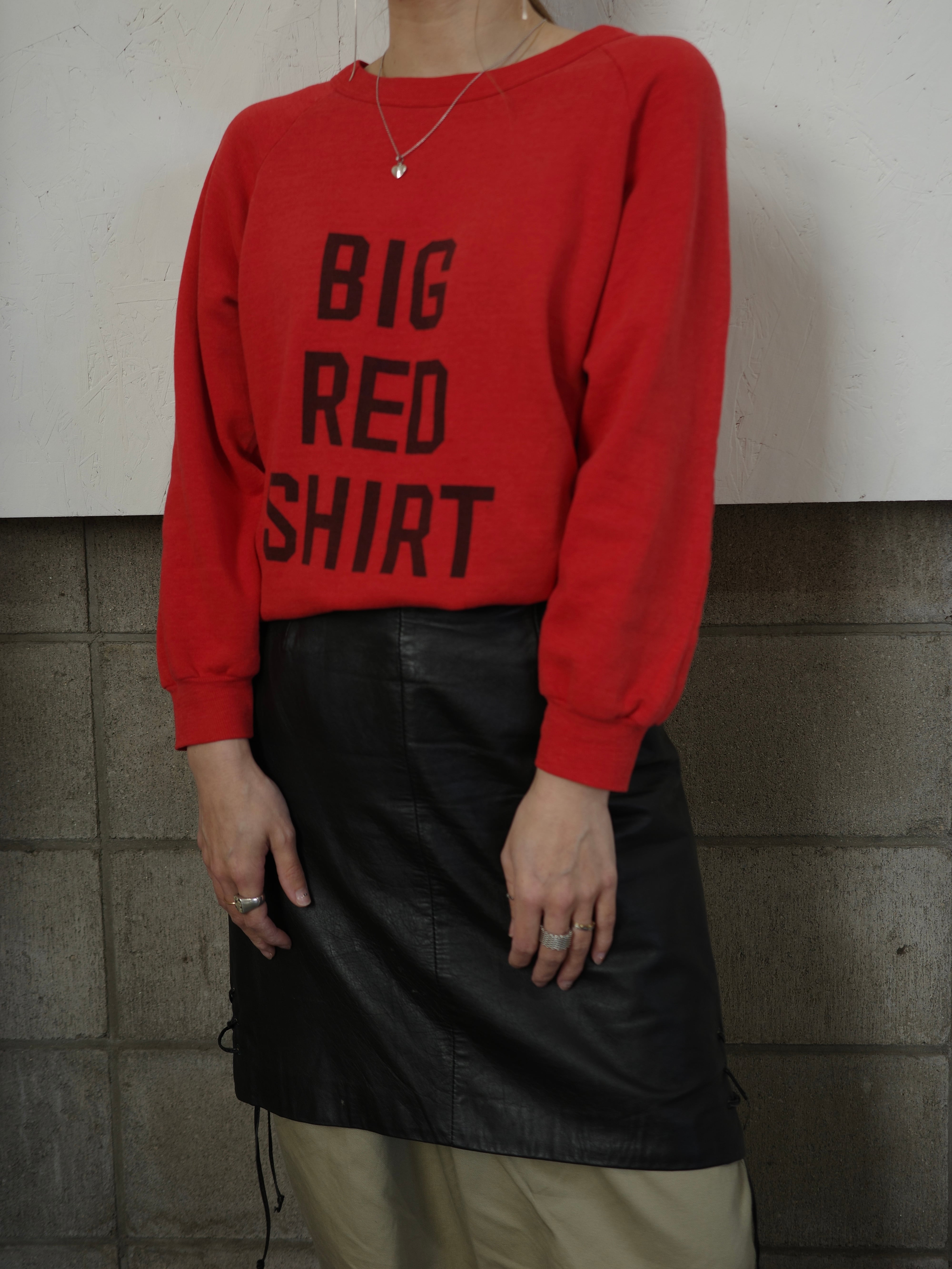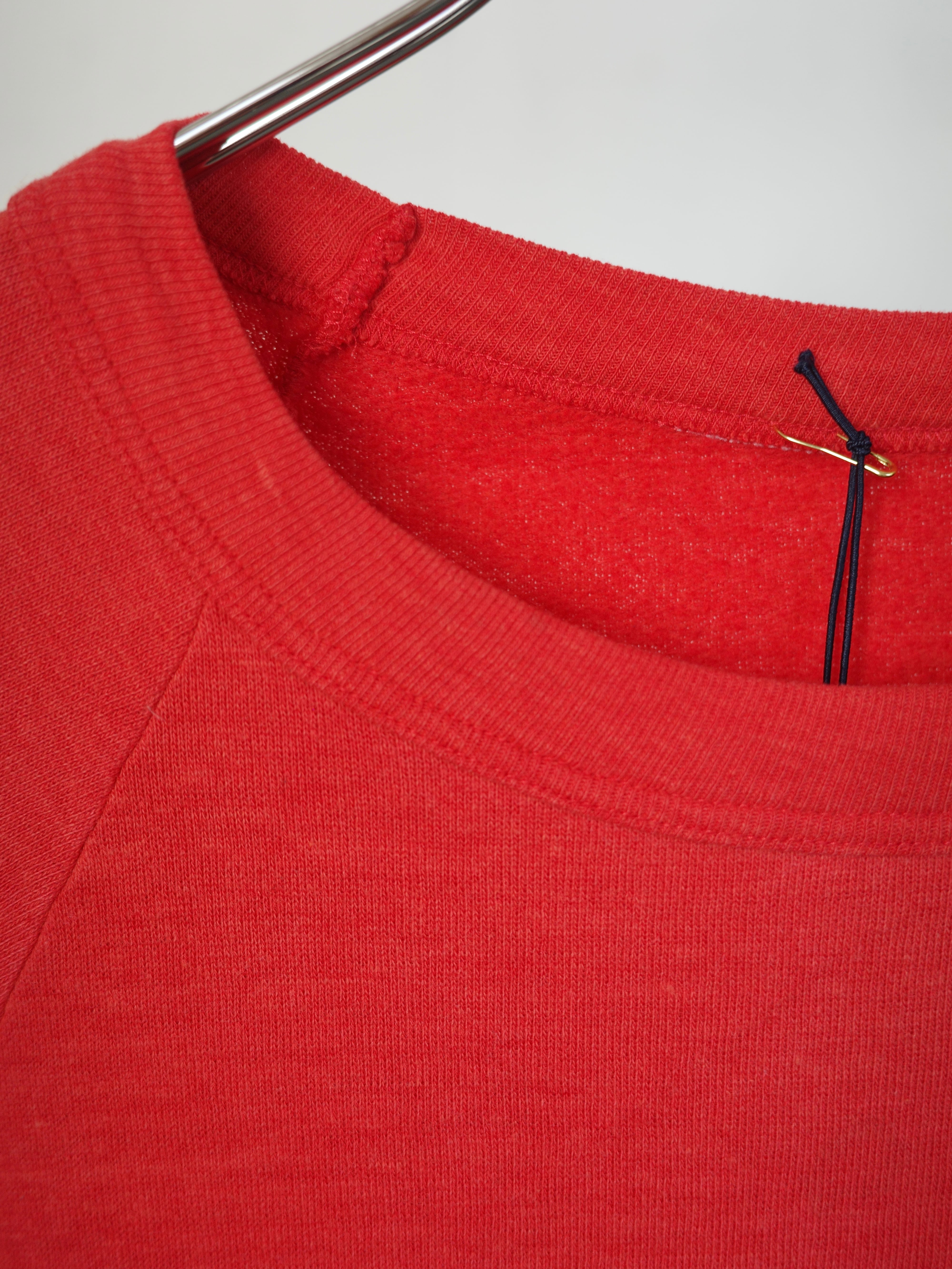 薄手のスェットです。やや褪せ感のあるレッドカラーが絶妙で、コーデイネートのアクセントになります。シンプルなロゴなのでジャケットなど大人なアイテムとも合わせやすいです。袖丈は8〜9分丈の短めになります。