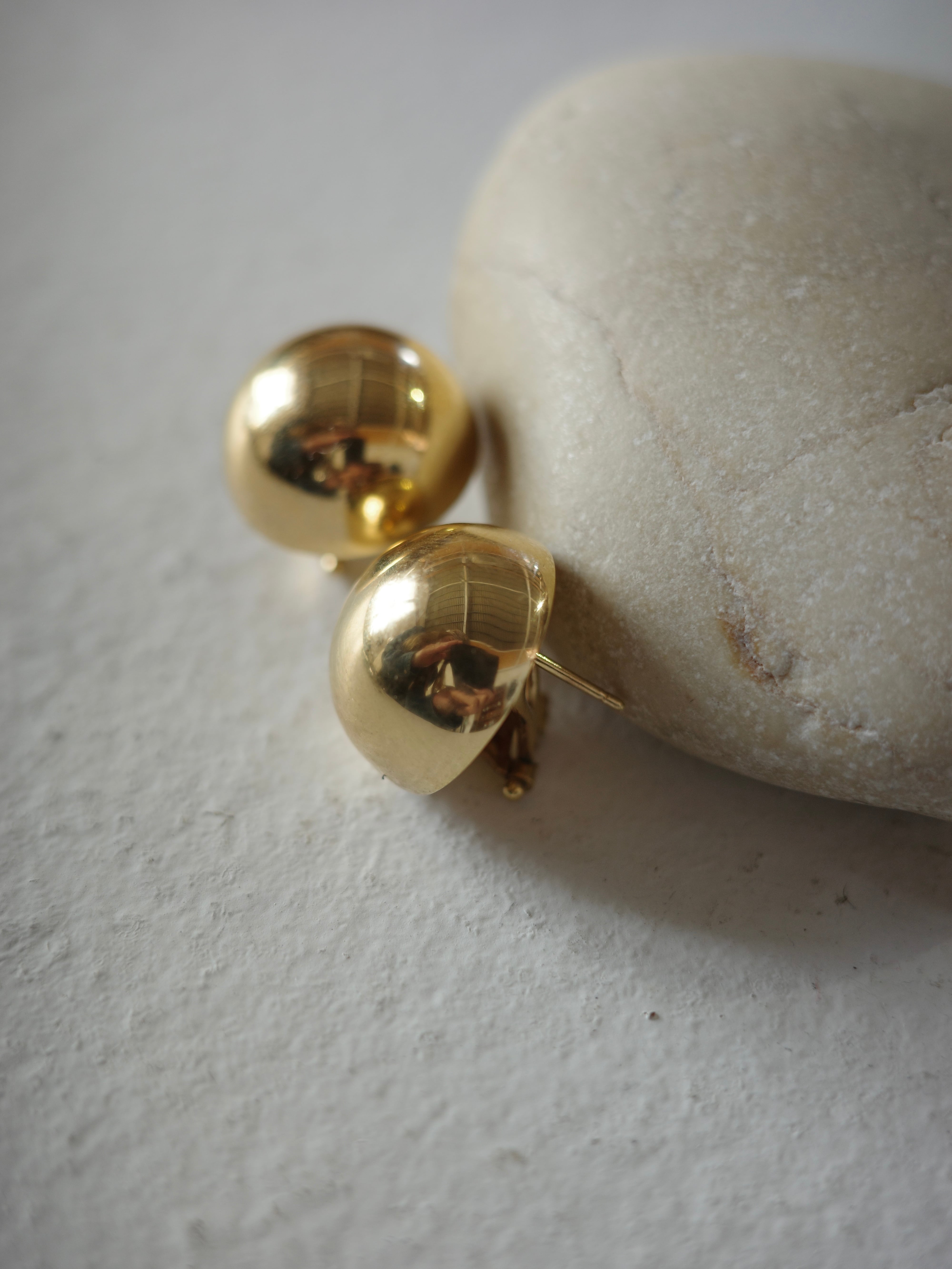 アメリカより仕入れたヴィンテージピアスです。半球で立体感のあるデザイン。大振で存在感があり、コーディネートを上品に仕上げてくれます。中空なので見た目以上に軽い付け心地です。