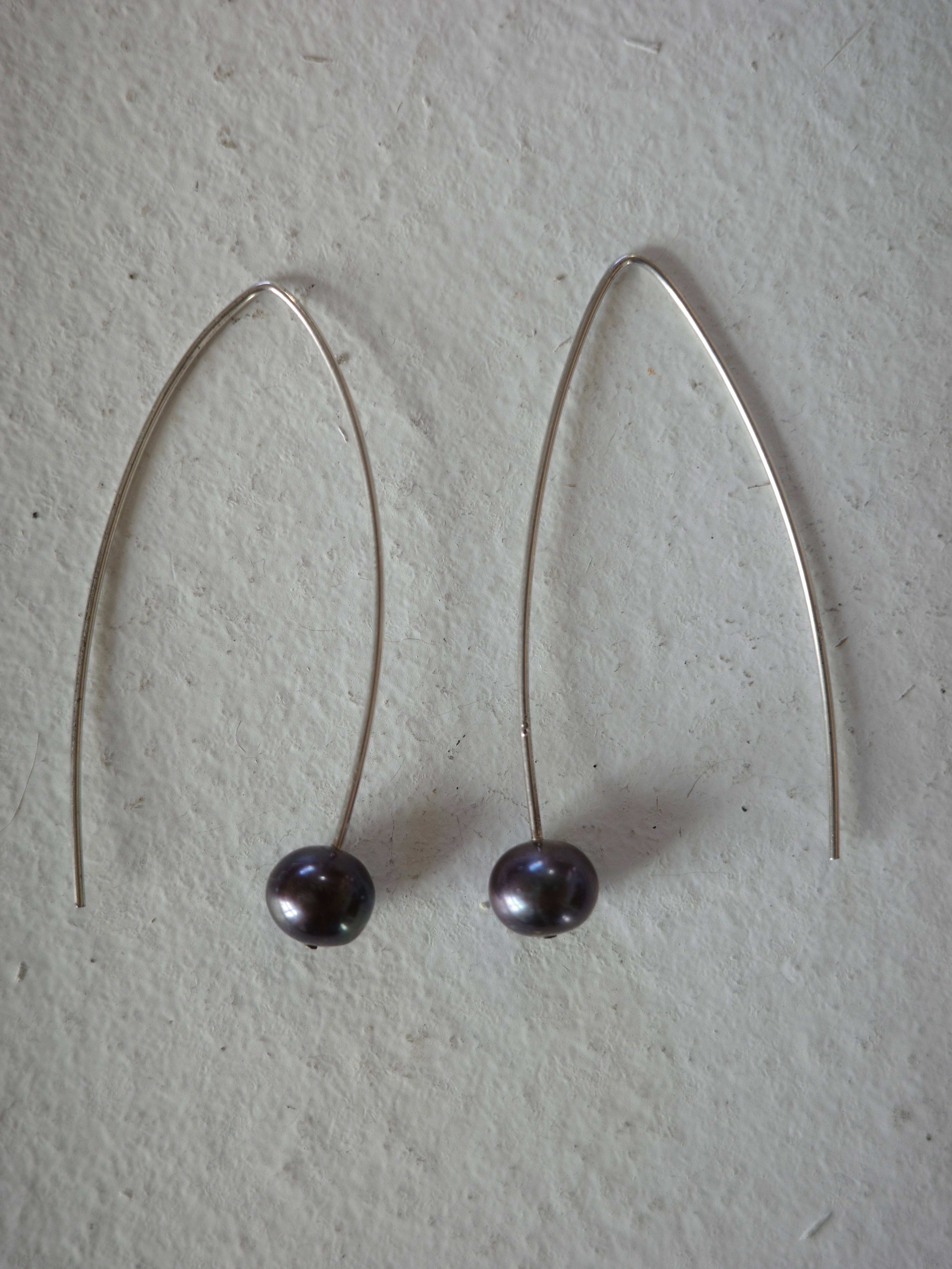 アメリカより仕入れたヴィンテージピアスです。大ぶりなフックデザインのピアスに、ブラックパールが施されています。華奢でシンプルですが存在感があり、上品な印象になります。