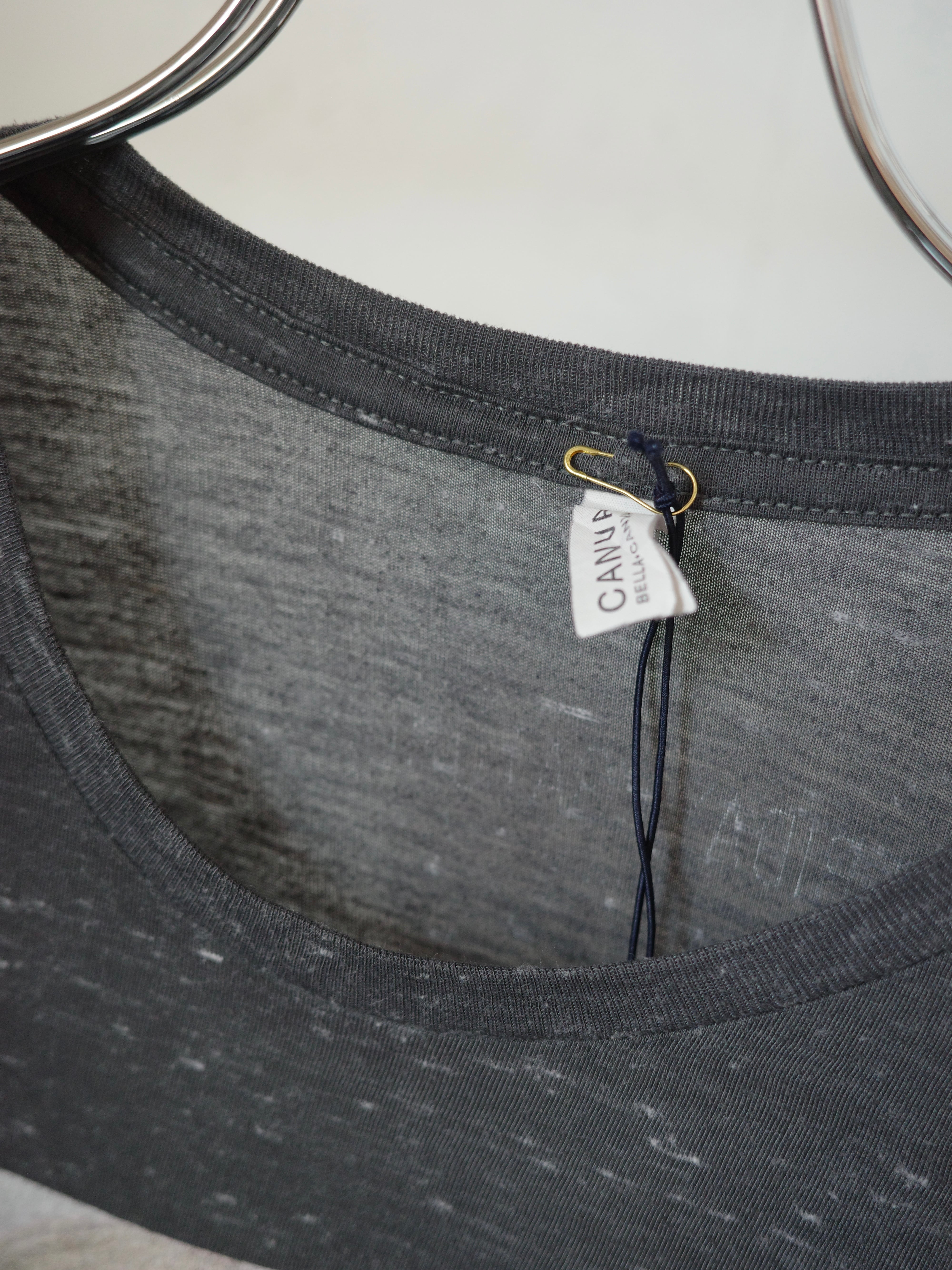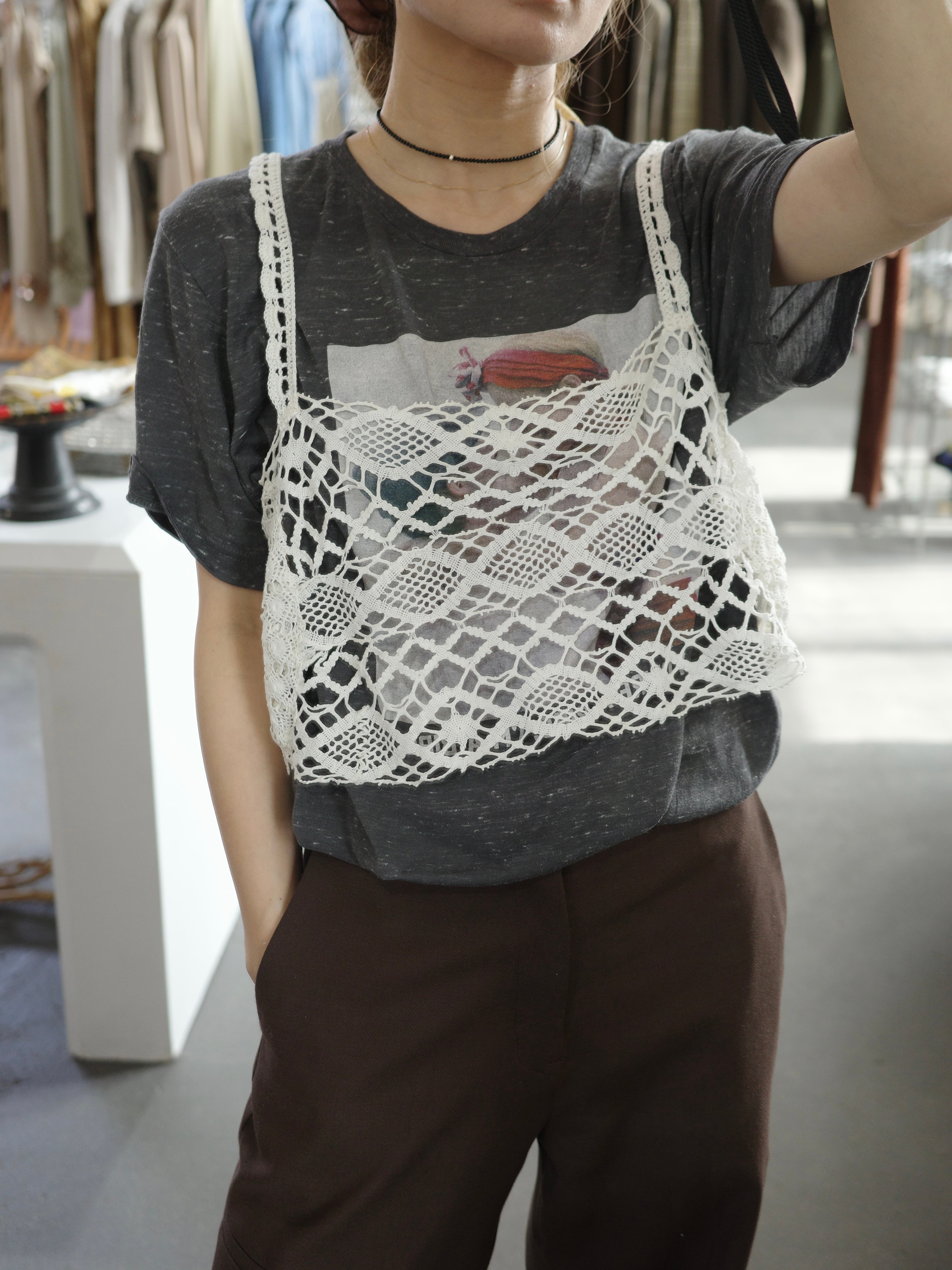 薄手で透け感のあるフォトプリントTシャツです。全体の霜降りカラーと、ゆるっとした落ち感のある生地が上品な1枚。