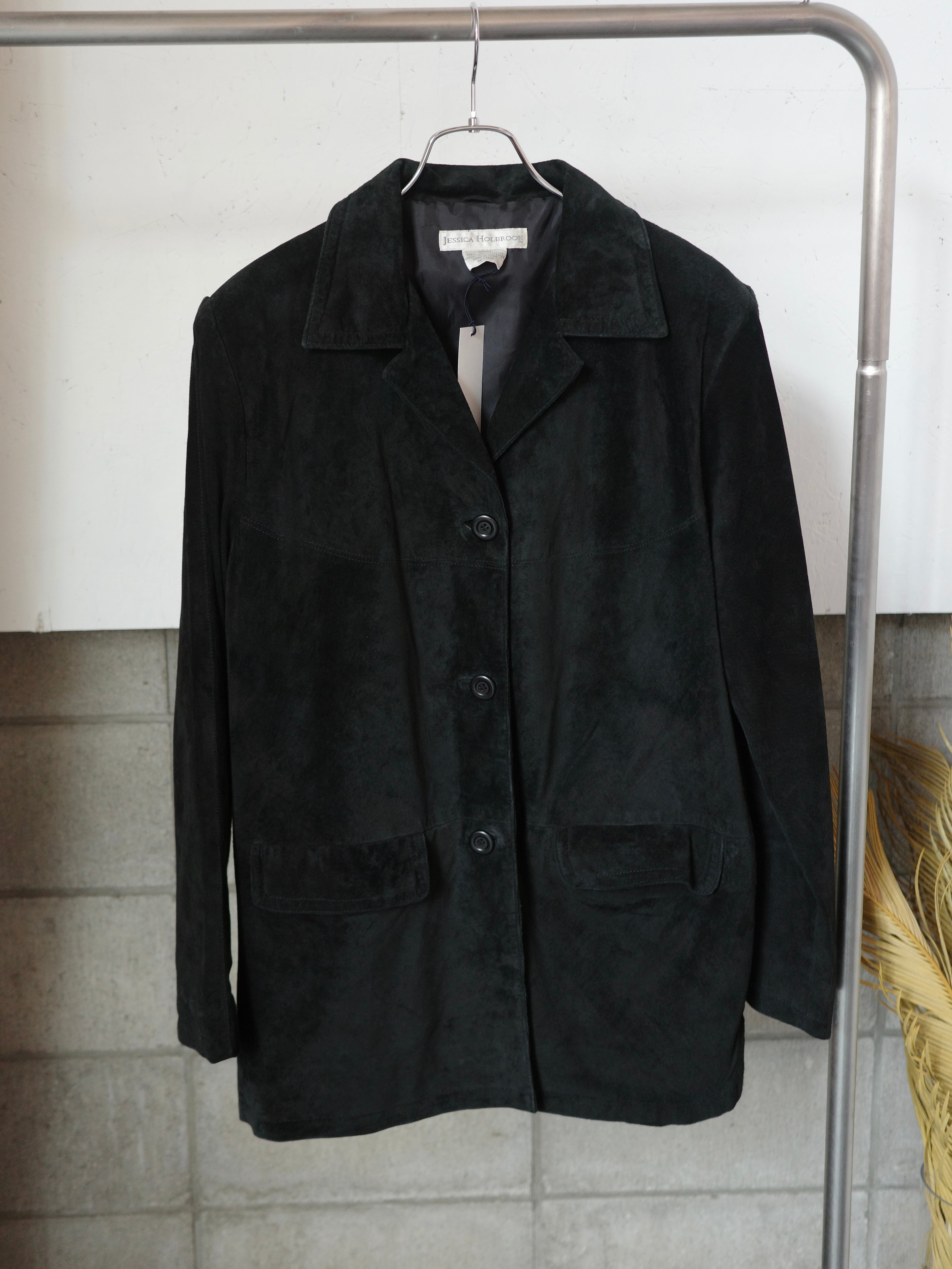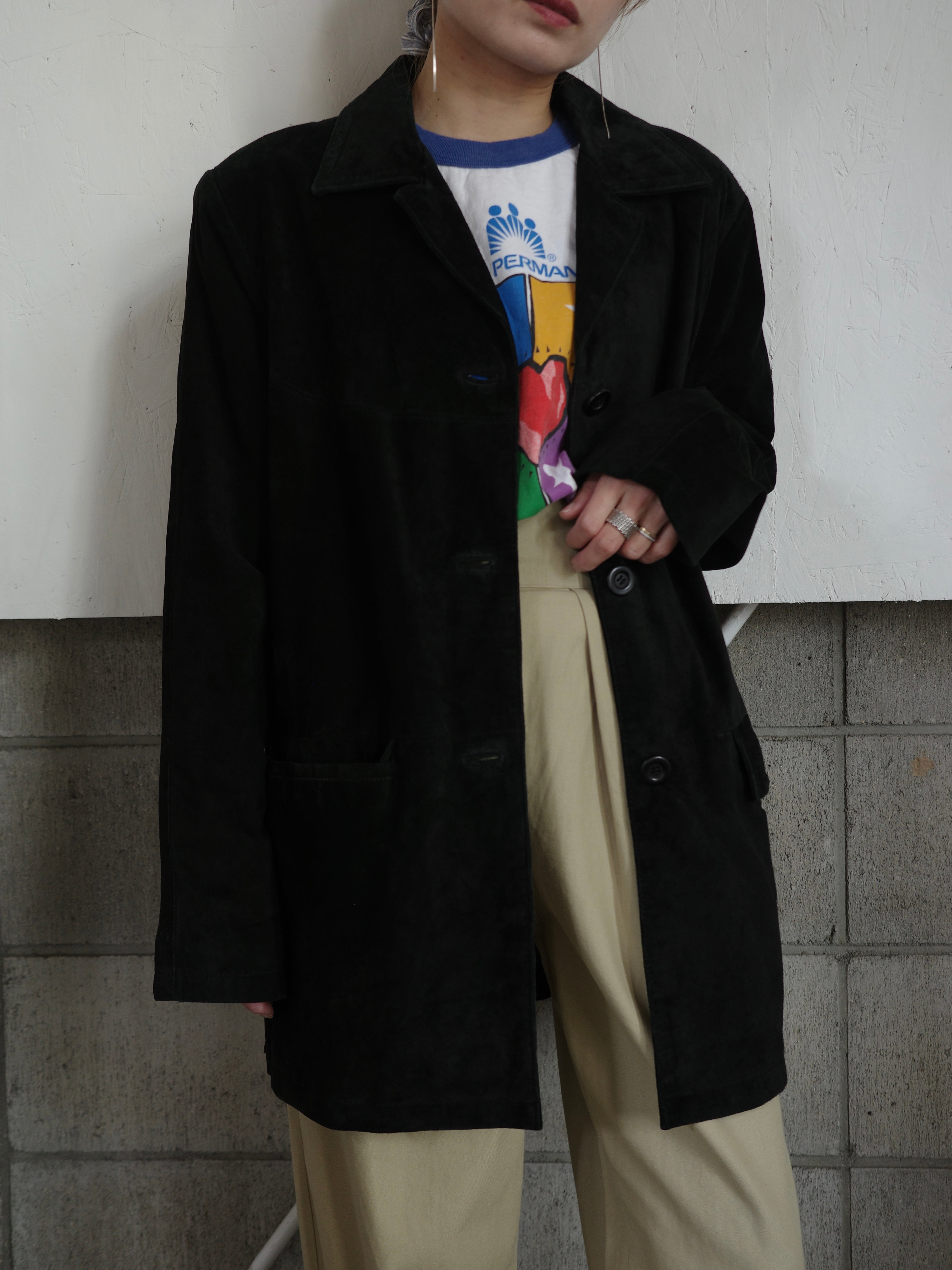 <vintage>black suede jacket