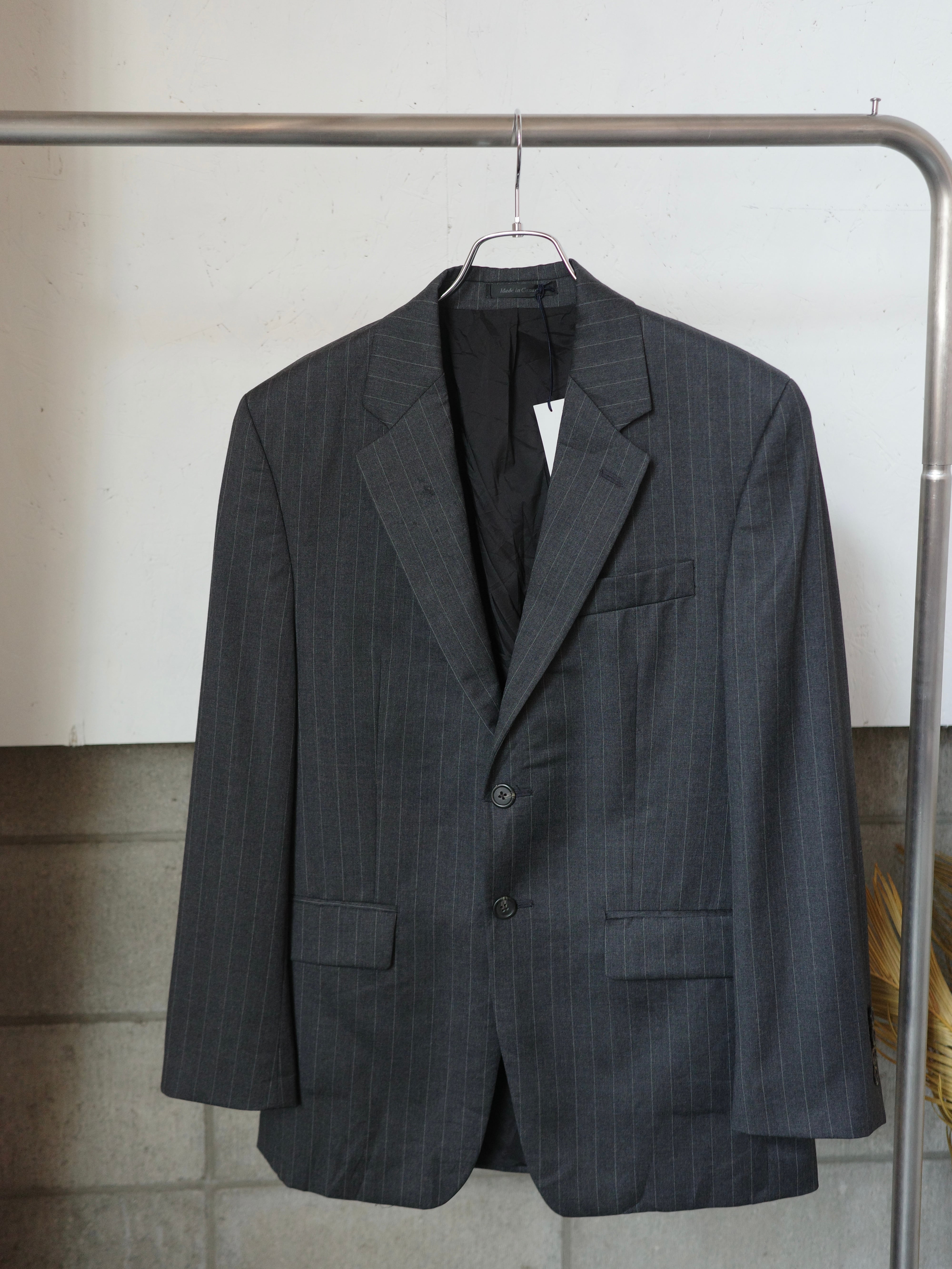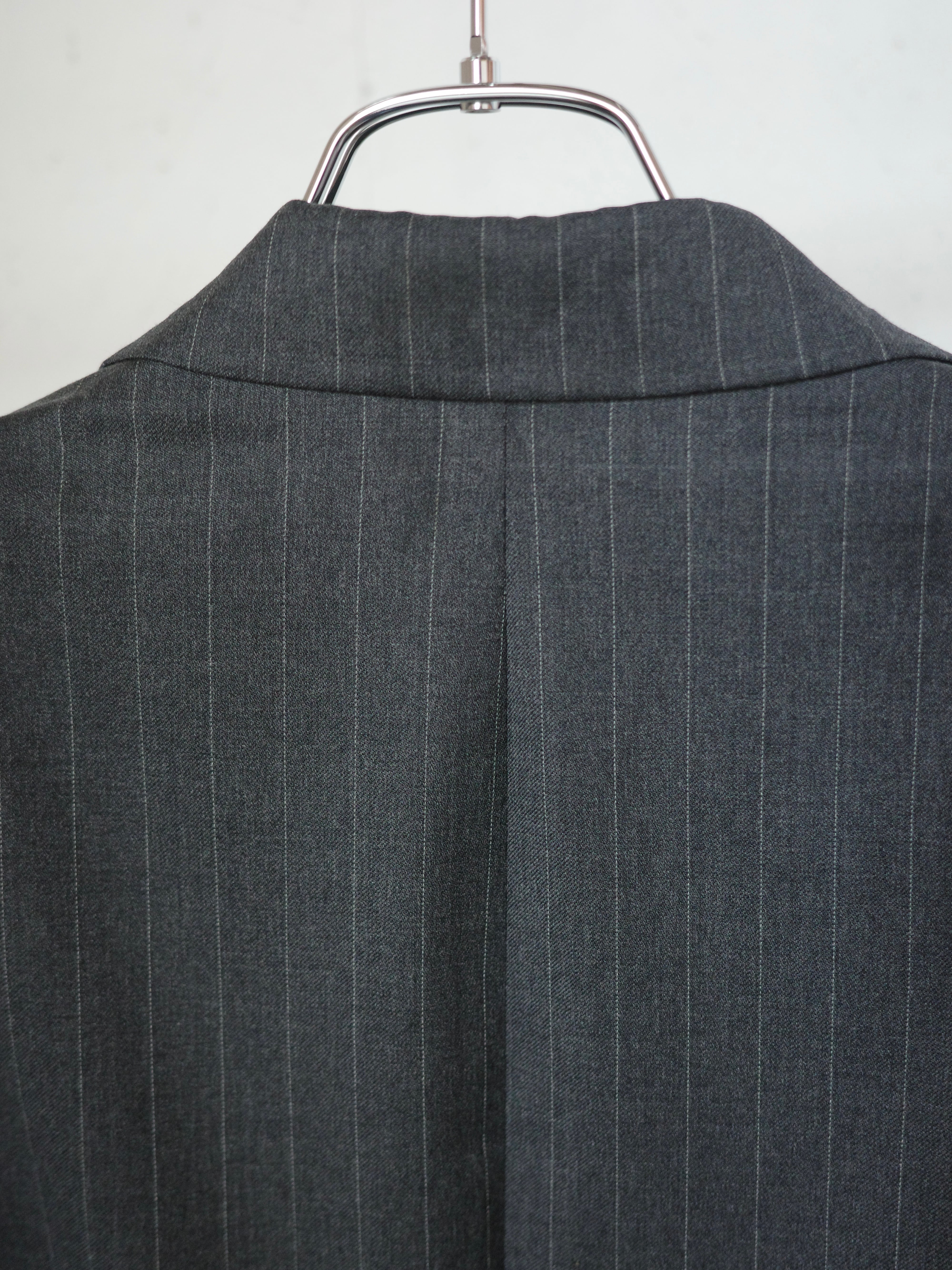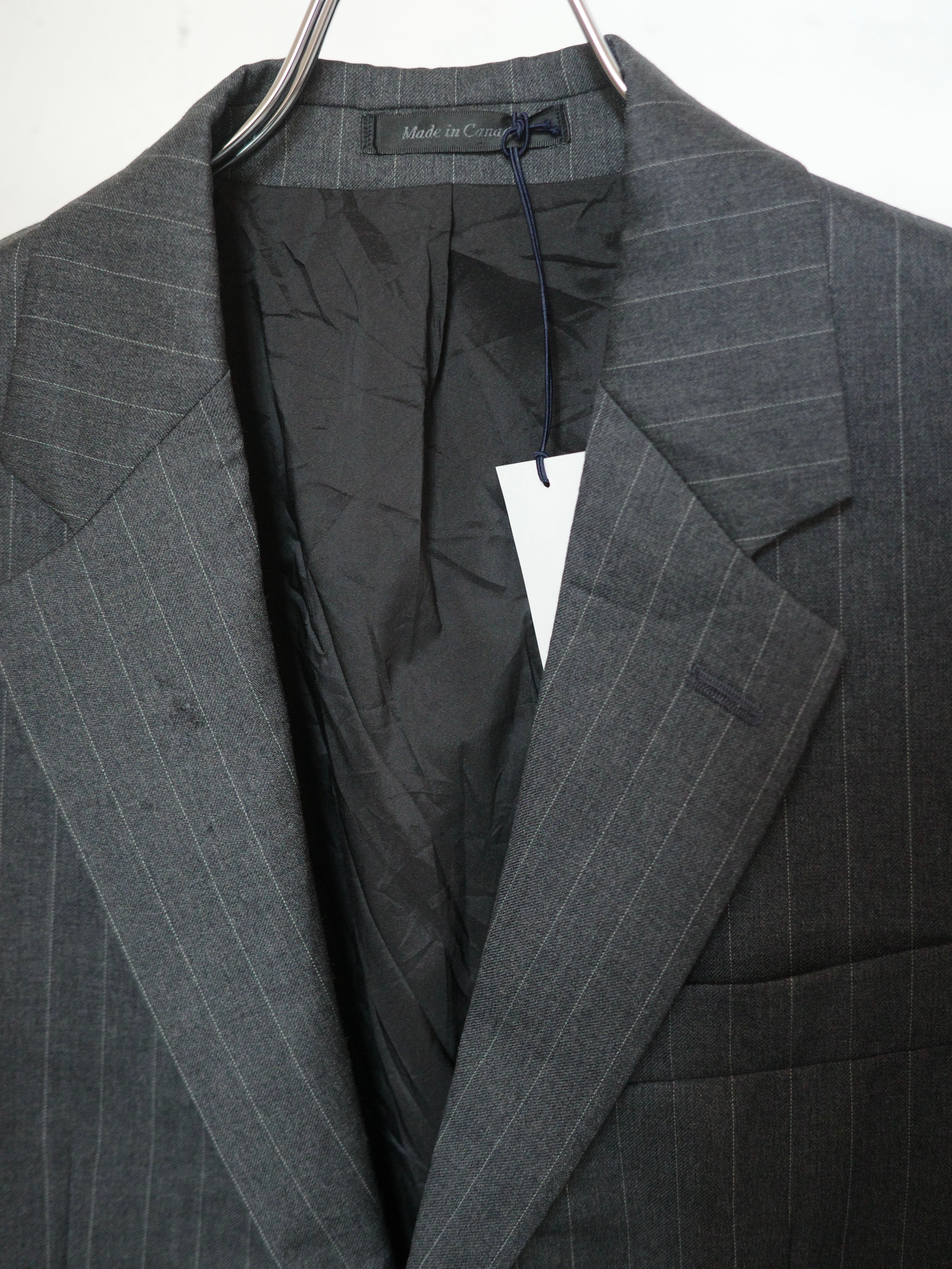 RalphLaurenのピンストライプジャケットです。通年きやすい素材感で、程よいオーバーサイズなシルエットになります。細くてさりげないピンストライプにチャコールグレーのカラーが大人で上品な印象になります。裏地も素敵なので袖をまくるのもおすすめです。