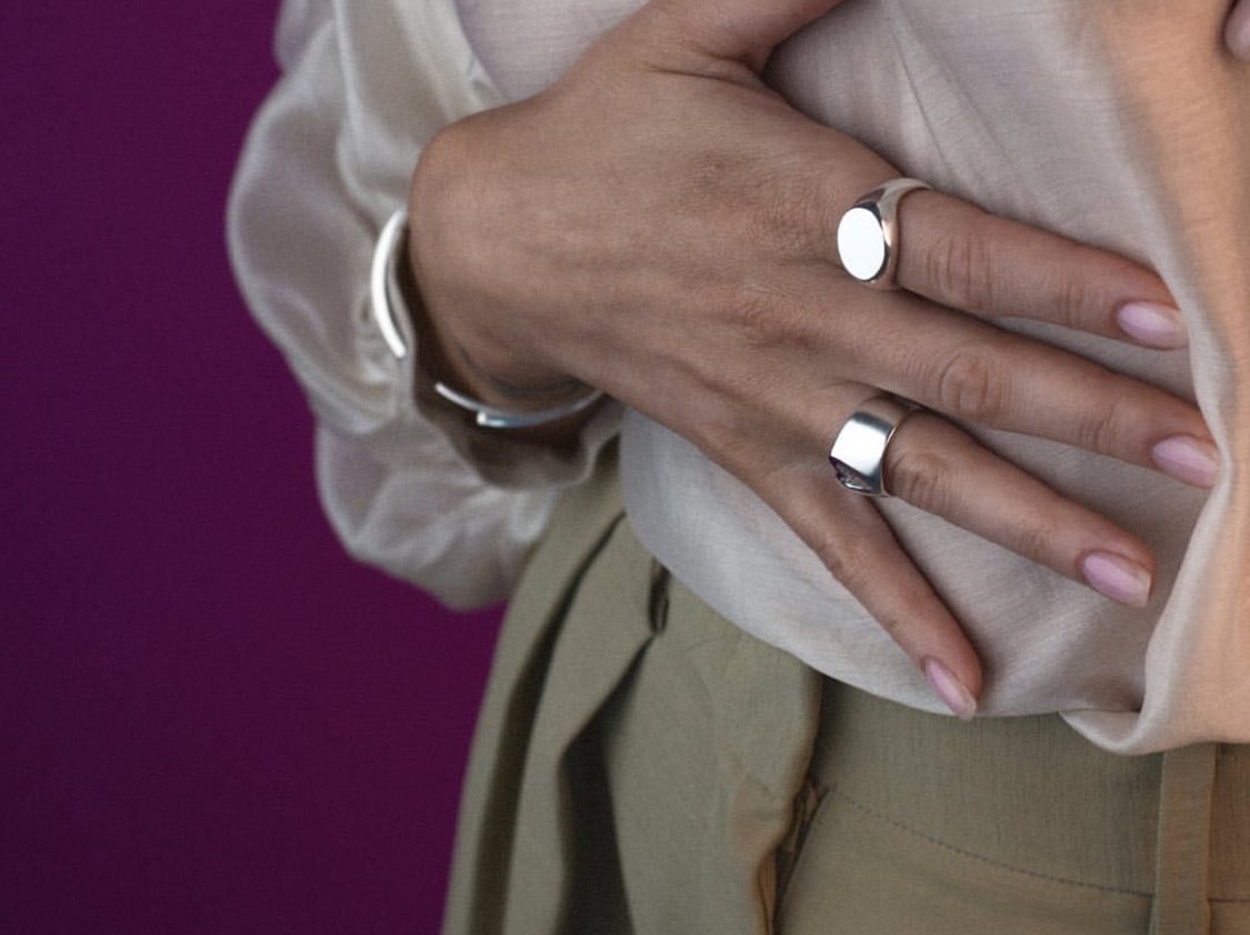 シンプルですがボリューム感のあるモードなデザインのリングです。洗練されたカッコ良い雰囲気で、女性だけでなく男性にもおすすめなアイテムです。