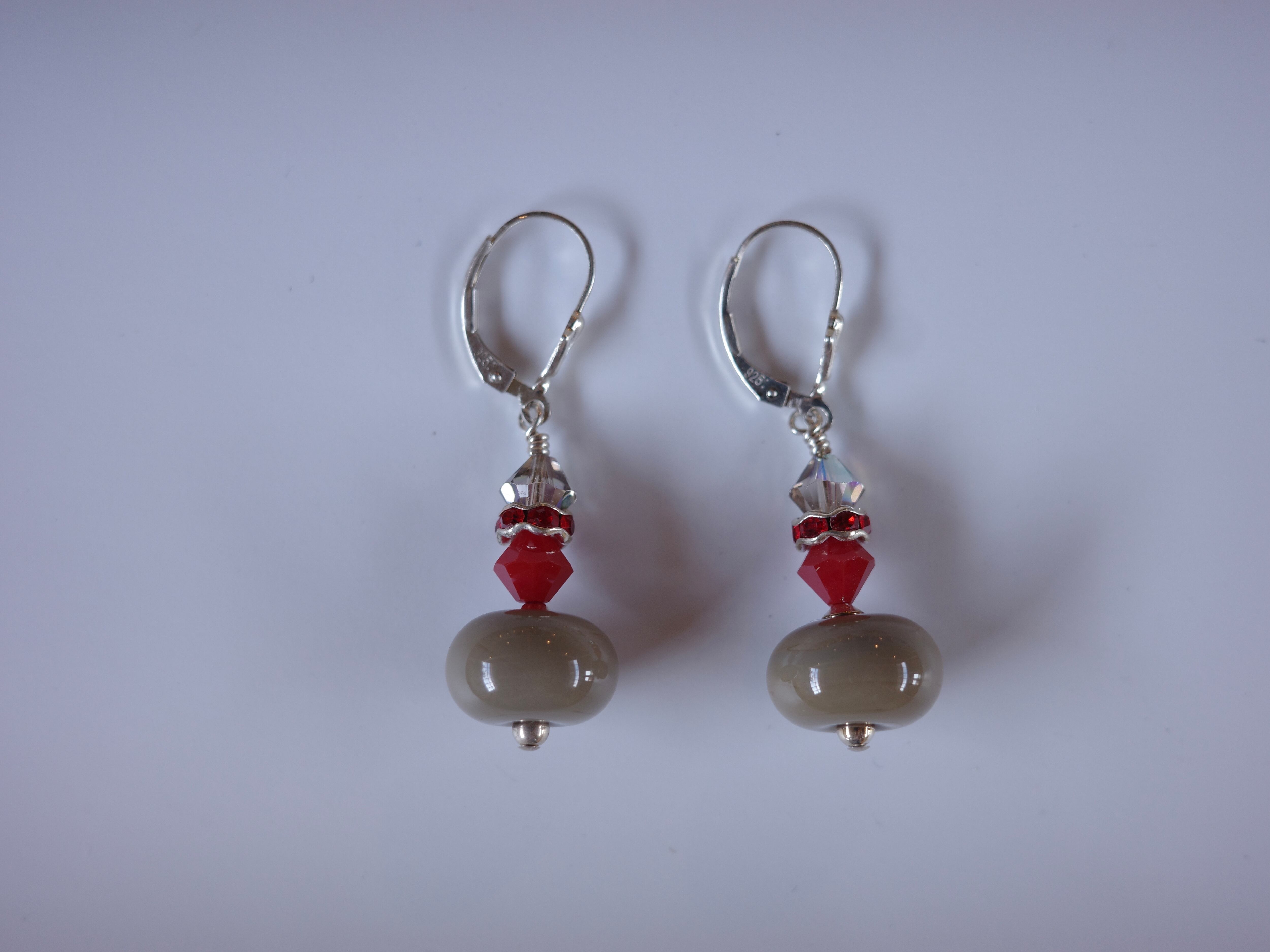 アメリカより仕入れたヴィンテージピアスです。グレージュのこっくりとしたビーズに赤いビーズがアクセントになった、色合わせがとっても素敵なデザインです。