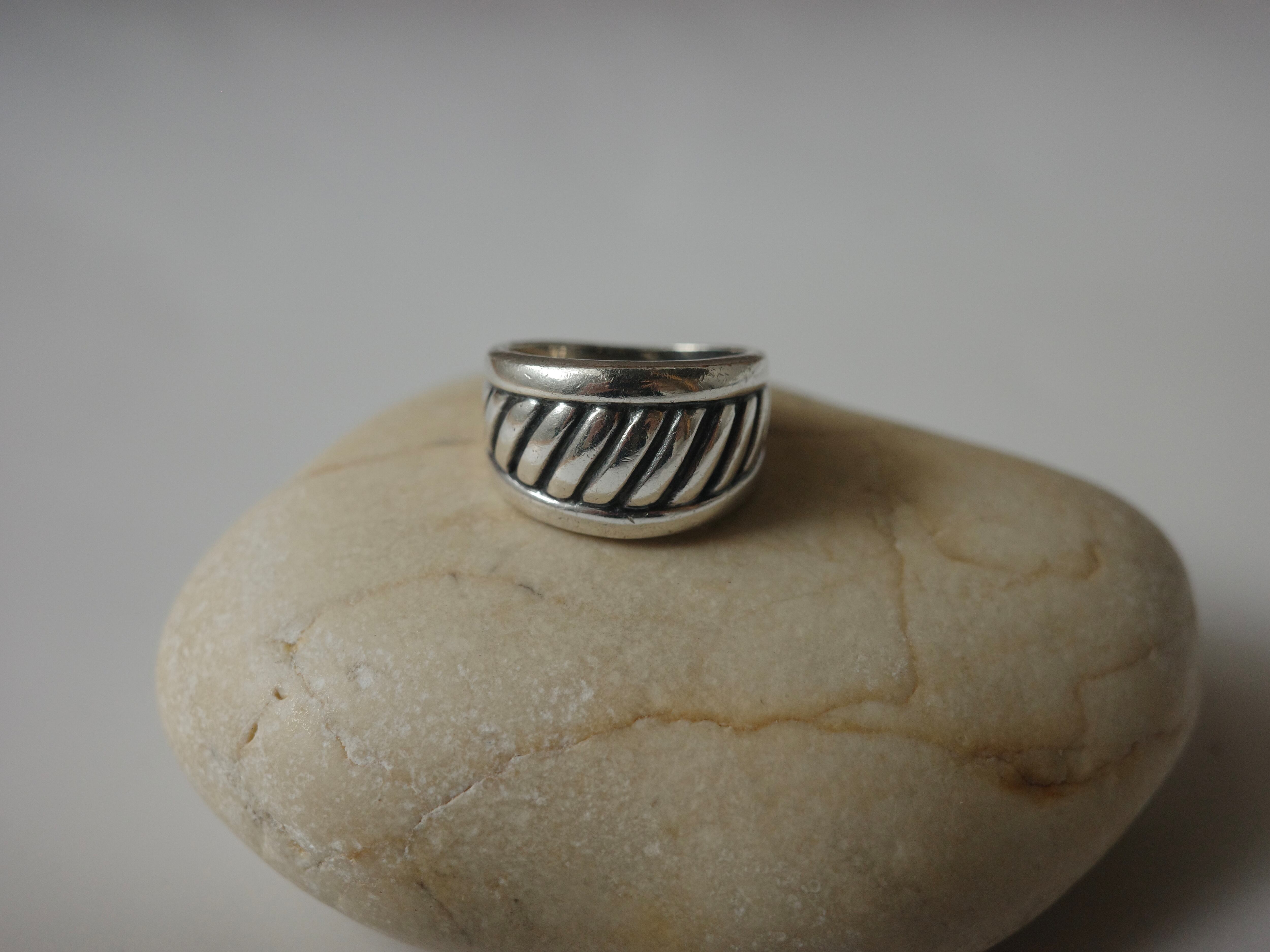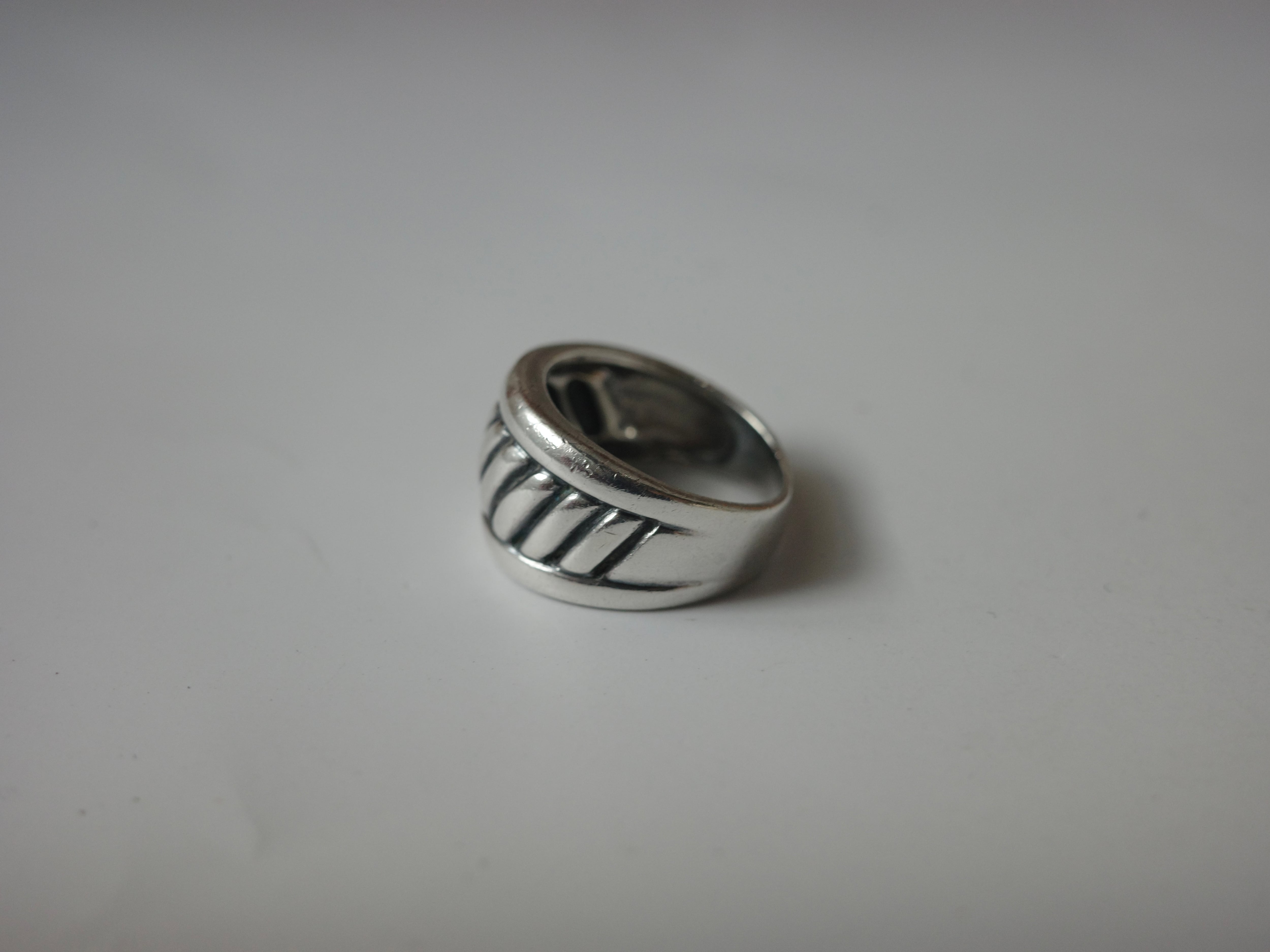 アメリカより仕入れたヴィンテージリングです。重厚感のあるメンズライクなデザインがカッコ良いアイテムです。 ※こちらはヴィンテージの輸入商品になります。くすみや汚れ、傷、歪み等がある場合がございますが、こちらは返品交換の対象とはなりませんのでご了承ください。経年変化による独特の風合いが味であるヴィンテージ商品に、ご理解のあるお客様のみのご購入をお願いしております。 素材:silver925(刻印あり) サイズ:US7(約13.5号) 重さ:5g 商品番号:v-3089